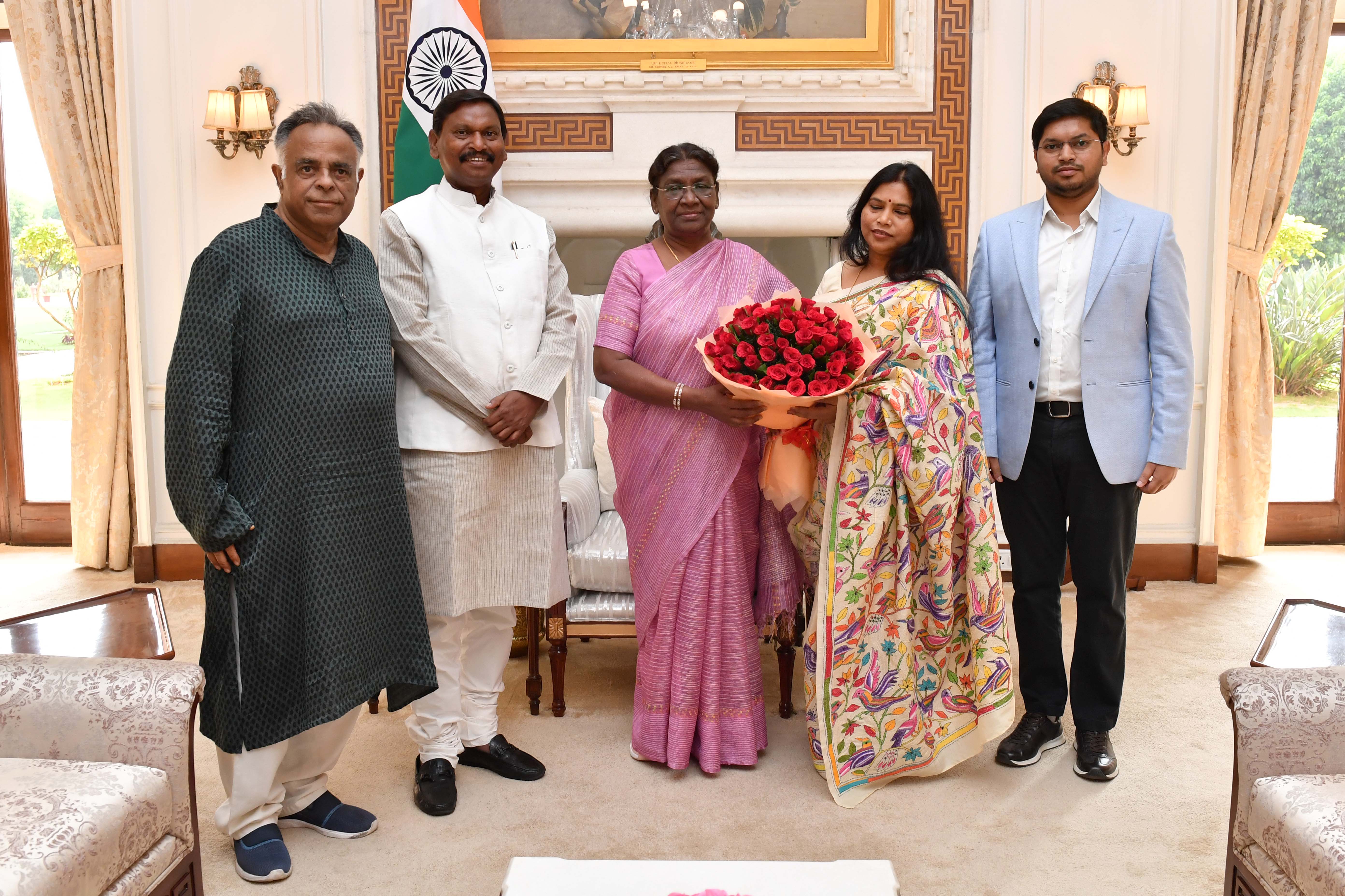Shri Arjun Munda, former Chief Minister of Jharkhand and former Union Minister of Tribal Affairs, Agriculture Farmers Welfare, Govt of India along with Rajesh Gupta called on the President of India Smt. Droupadi Murmu at Rashtrapati Bhavan on January 7, 2025.
