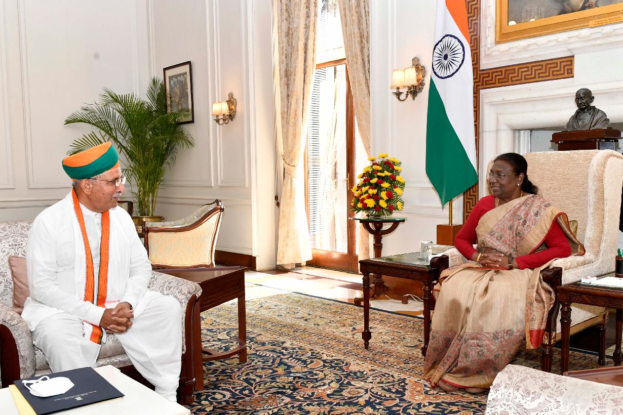 The Minister of State (IC) for Law Justice and Minister of State for Parliamentary Affairs, Shri Arjun Ram Meghwal called on the President of India, Smt Droupadi Murmu at Rashtrapati Bhavan on June 18, 2024.