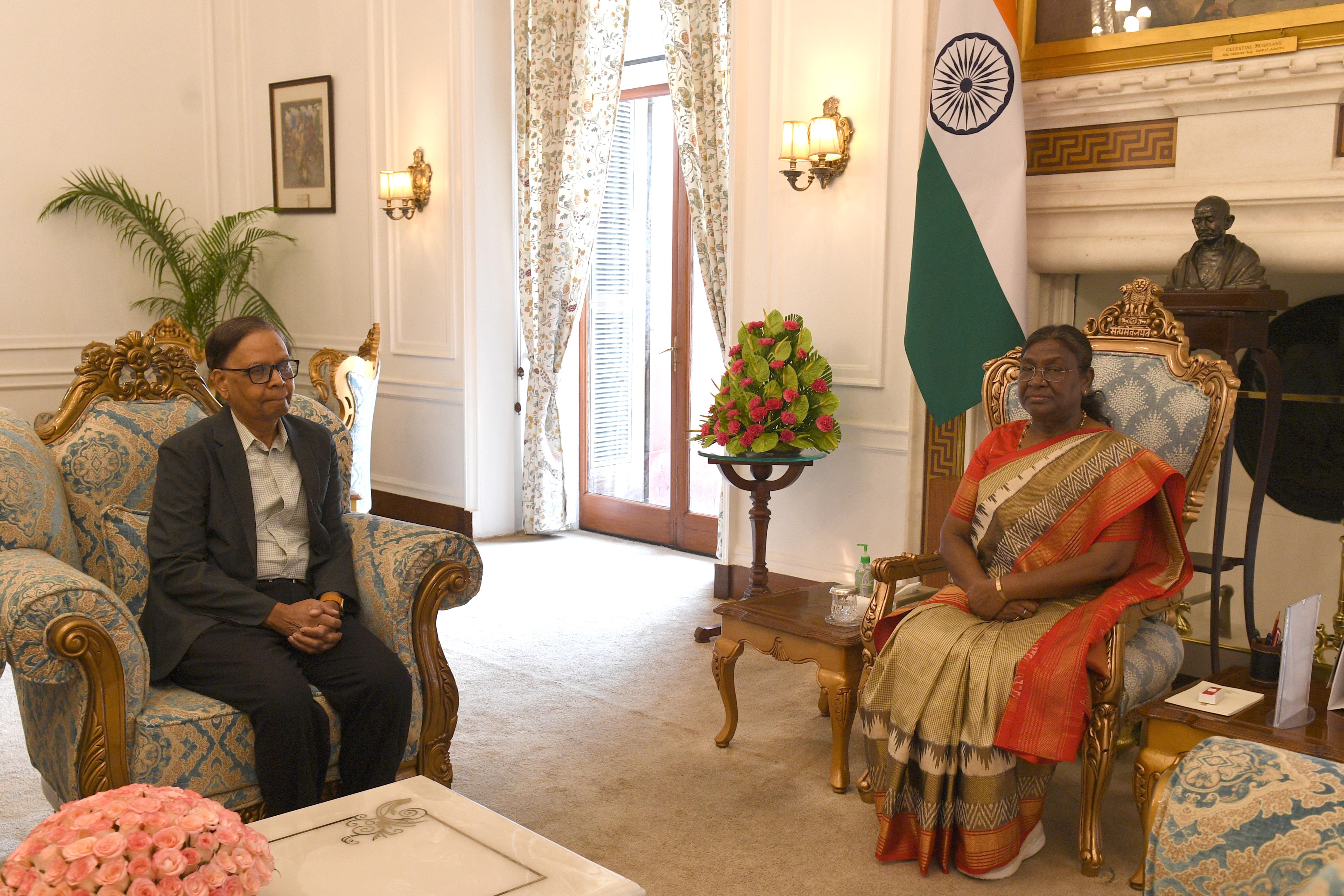 The Chairman of 16th Finance Commission, Dr Arvind Panagariya called on the President of India Smt Droupadi Murmu at Rashtrapati Bhavan on June 07, 2024.