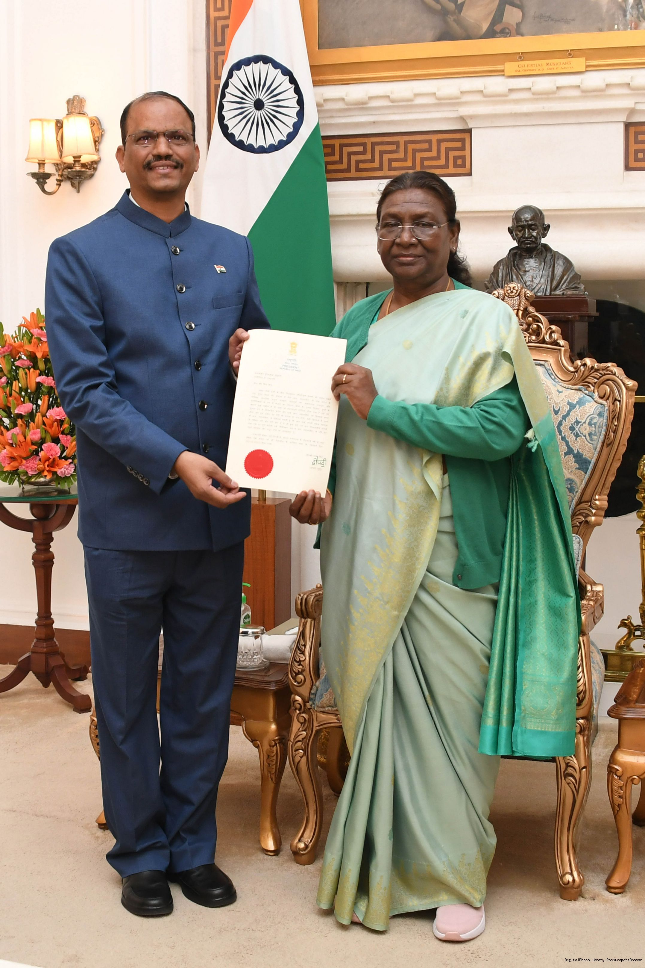 The Ambassador-designate of India to Mongolia, Shri Atul Malhari Gotsurve meeting with the President of India Smt. Droupadi Murmu at Rashtrapati Bhavan on December 14, 2023.