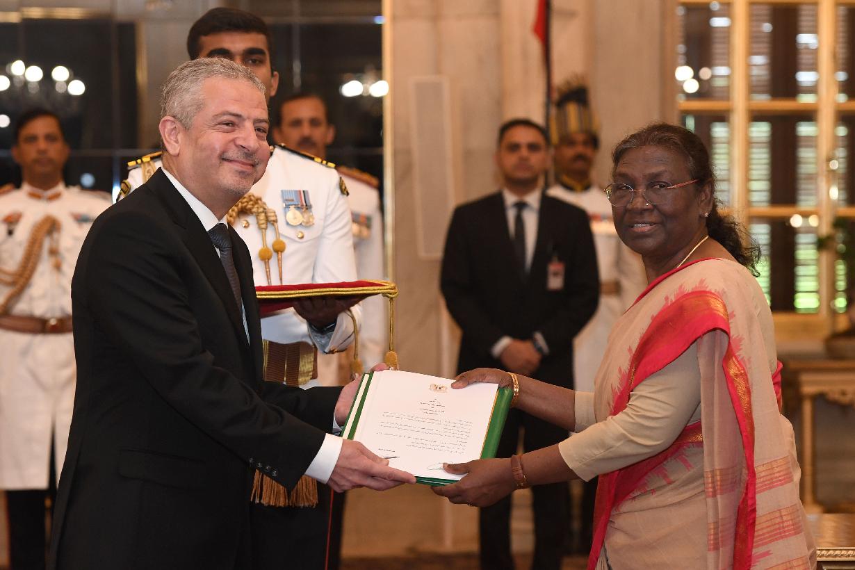 The Ambassador-designate of the Syrian Arab Republic, H.E. Dr. Bassam Alkhatib presenting his credentials to the President of India, Smt. Droupadi Murmu, at Rashtrapati Bhavan on September 14, 2022.