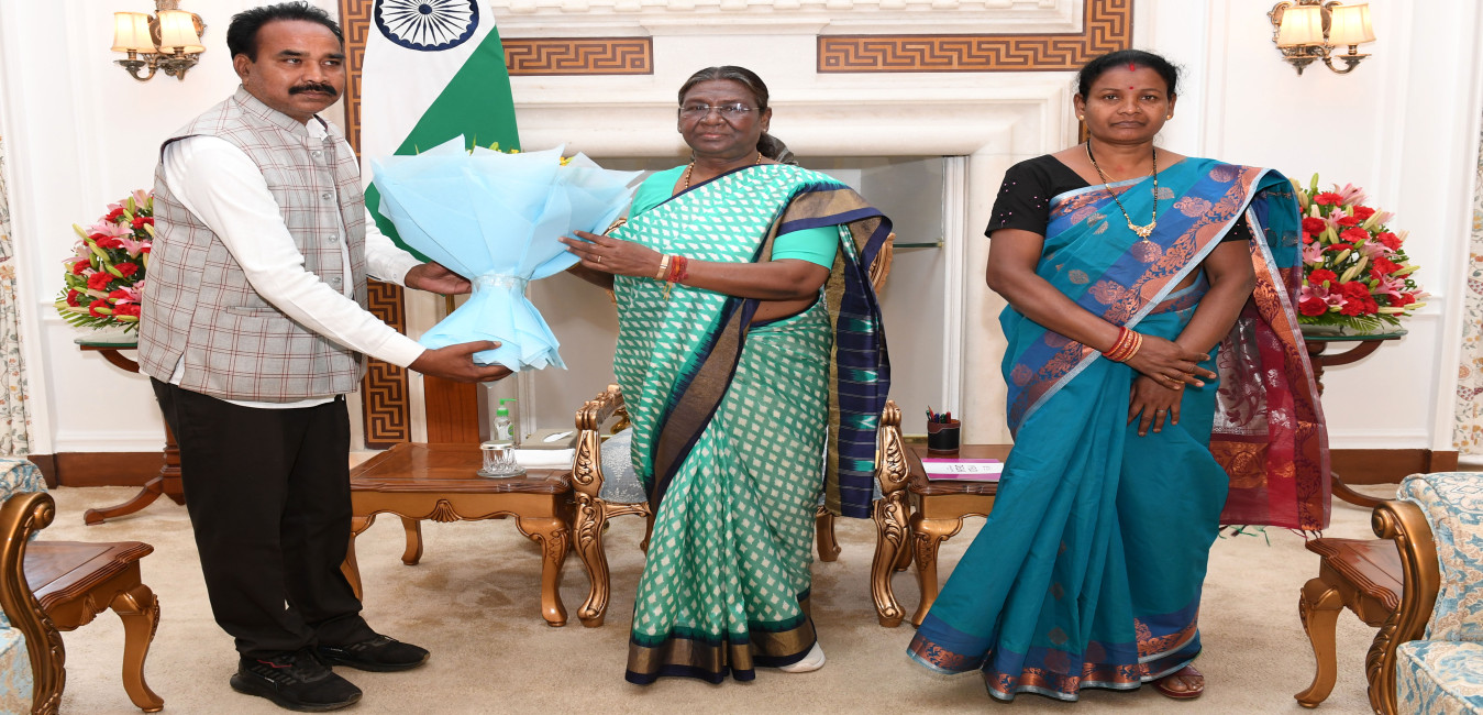 Shri Bhadav Hansdah along with others meeting with the President of India Smt Droupadi Murmu at Rashtrapati Bhavan on March 26, 2024.