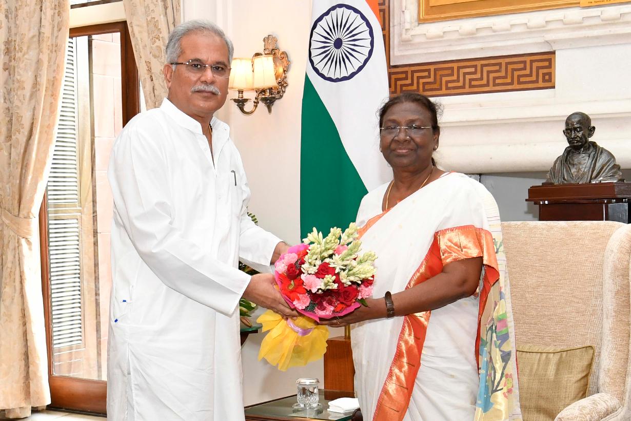 The Chief Minister of Chhattisgarh, Shri Bhupesh Baghel calling on the President of India, Smt. Droupadi Murmu, at Rashtrapati Bhavan on August 06, 2022.