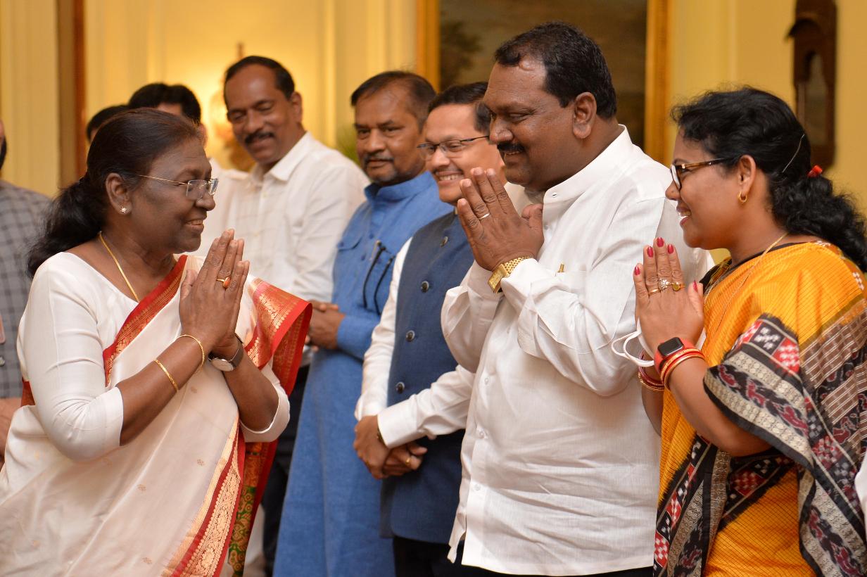 A delegation of Odisha Legislative Assembly, led by the Speaker, Shri Bikram Keshari Arukha calling on the President of India, Smt. Droupadi Murmu, at Rashtrapati Bhavan on August 03, 2022.