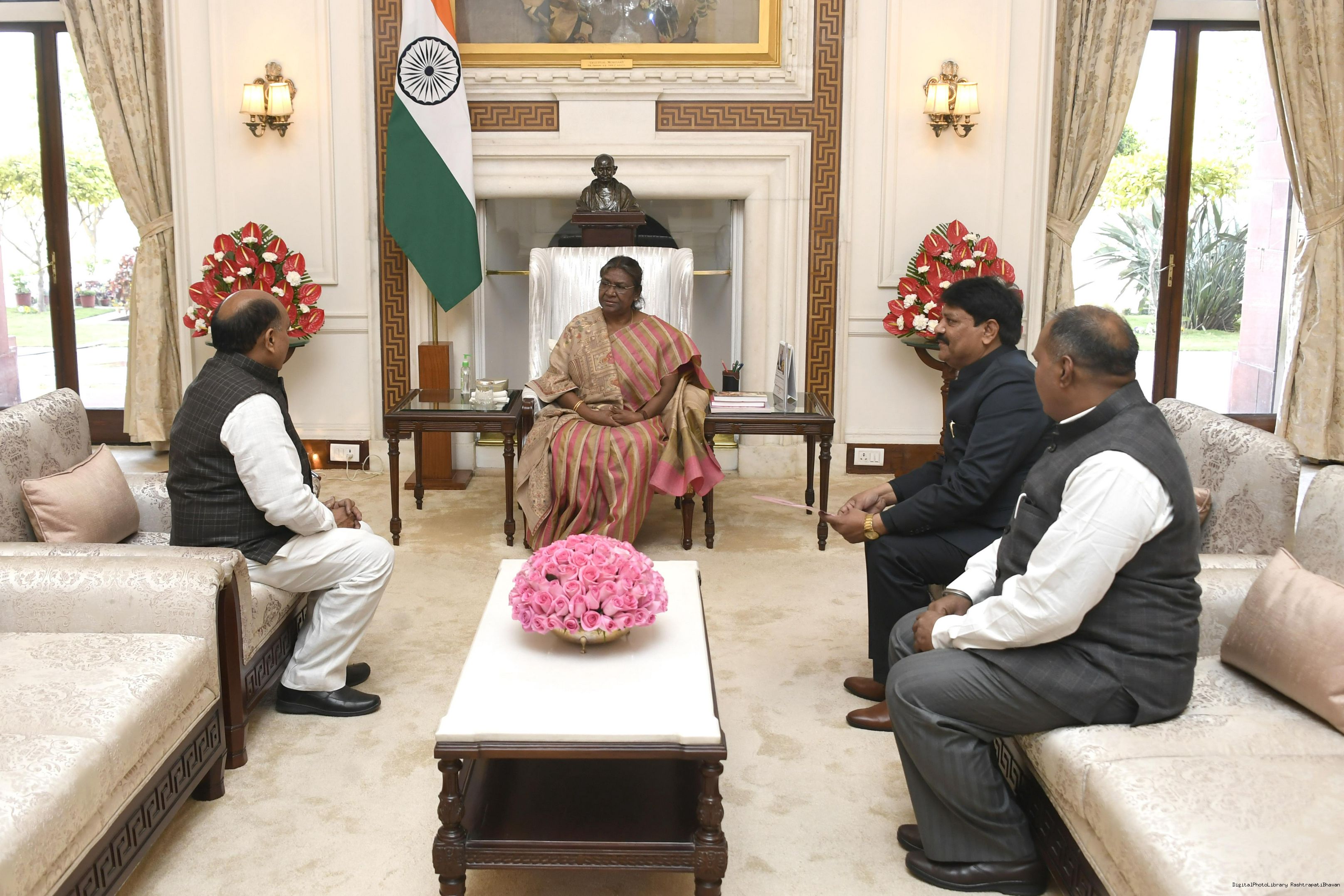 Shri Brahm Prakash Bulaki, Pradhan along with others from Shri Guru Ravidas Janm Utsav Committee, Delhi meeting with the President of India Smt. Droupadi Murmu at Rashtrapati Bhavan on February 04, 2023.