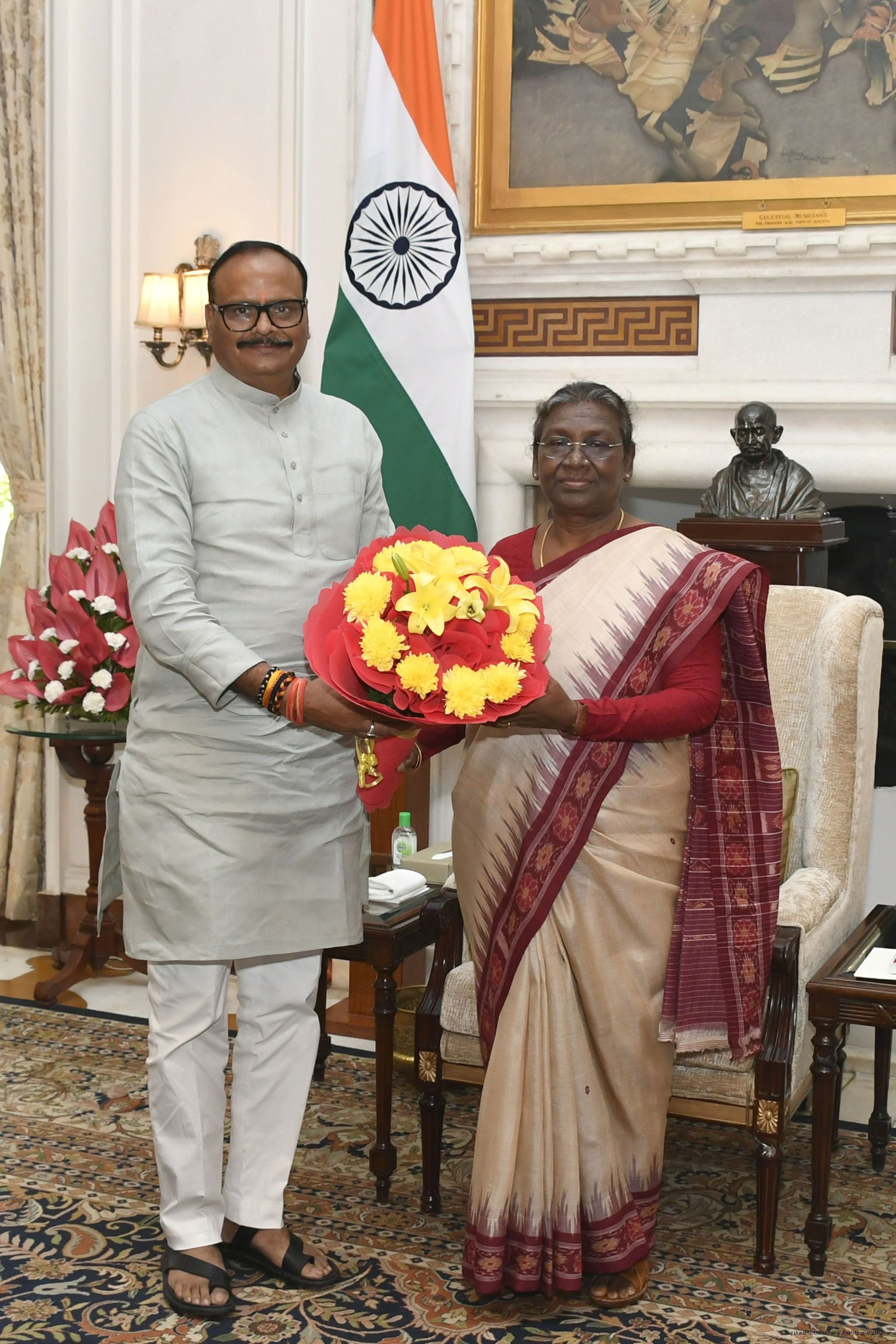 Shri Brajesh Pathak, Dy. Chief Minister of Uttar Pradesh meeting with the President of India, Smt. Droupadi Murmu, at Rashtrapati Bhavan on Oct 10, 2022.