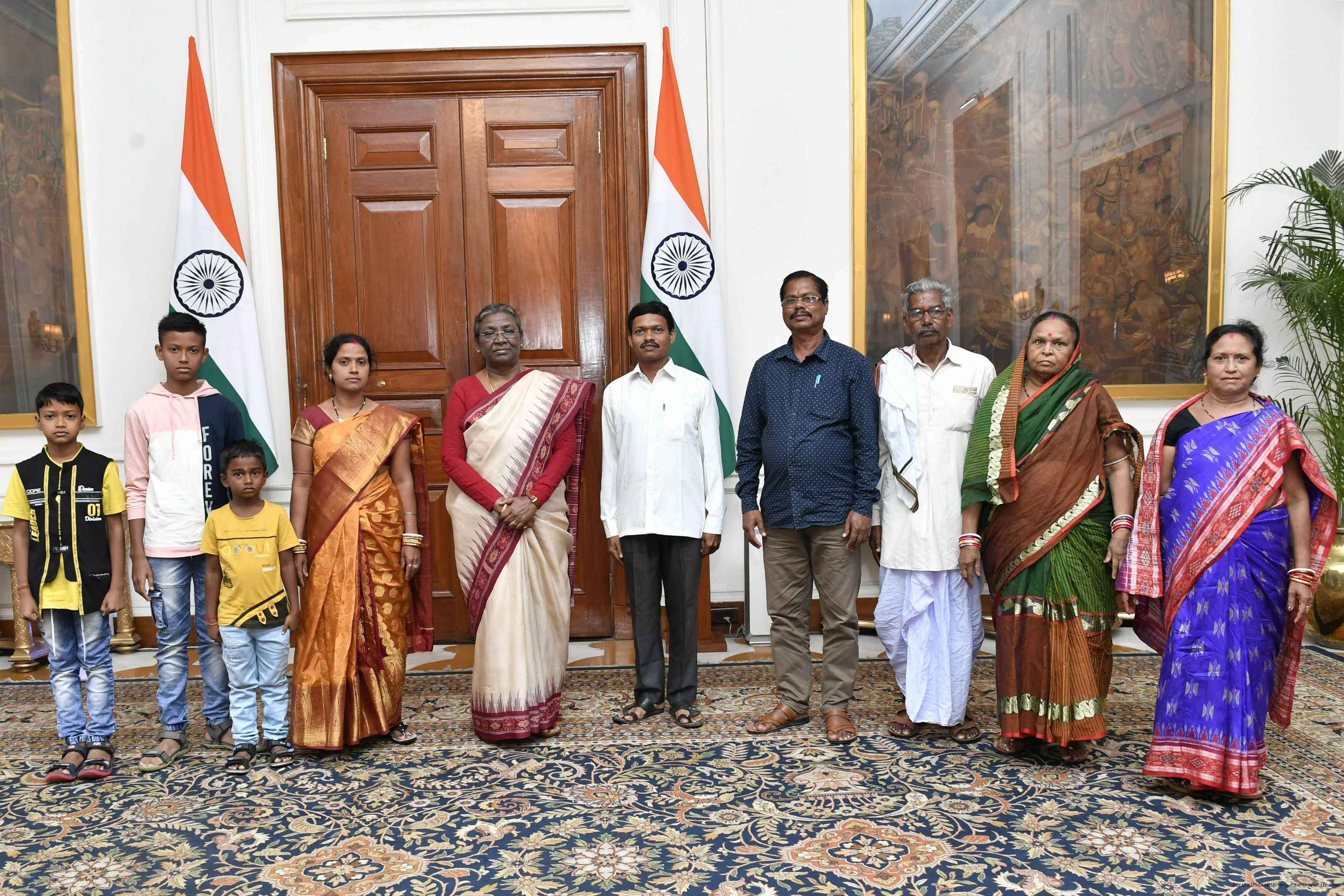 Shri Chaitanya Prasad Barik along with others from Mayurbhanj meeting with the President of India, Smt. Droupadi Murmu, at Rashtrapati Bhavan on Oct 10, 2022.