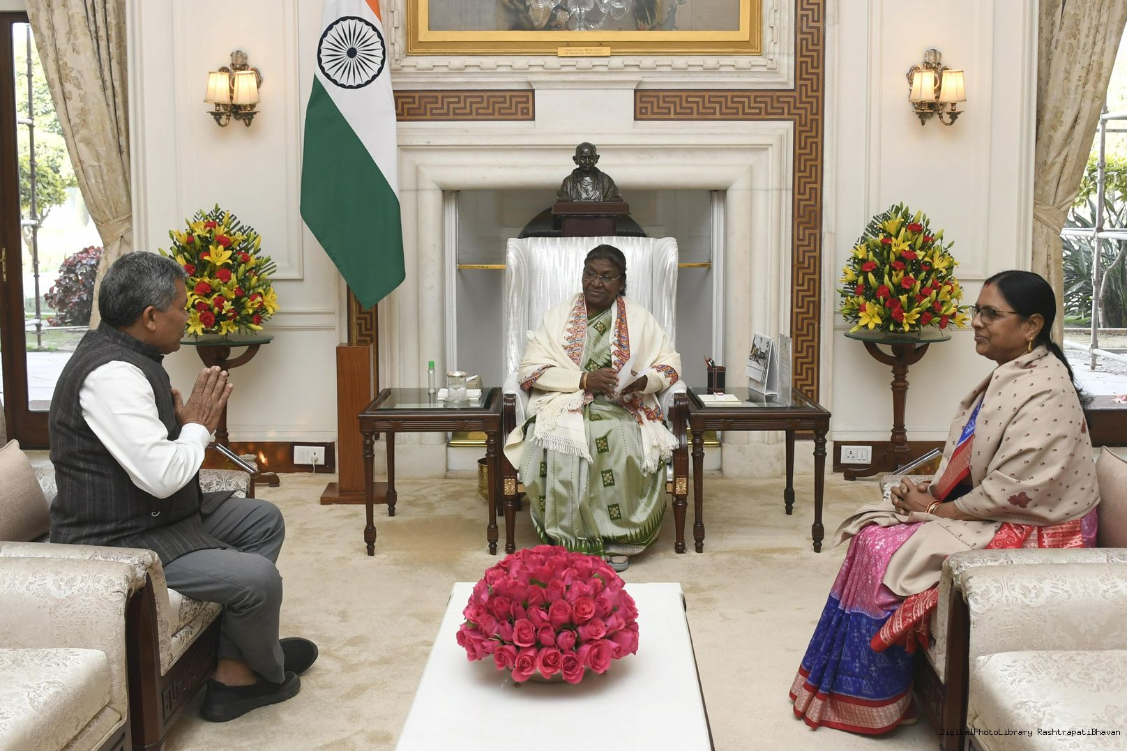 Prof. (Dr.) Chakradhar Tripathi, Vice Chancellor, Central University of Odisha, Koraput along with his wife meeting with the President of India Smt. Droupadi Murmu at Rashtrapati Bhavan on January 17, 2023.