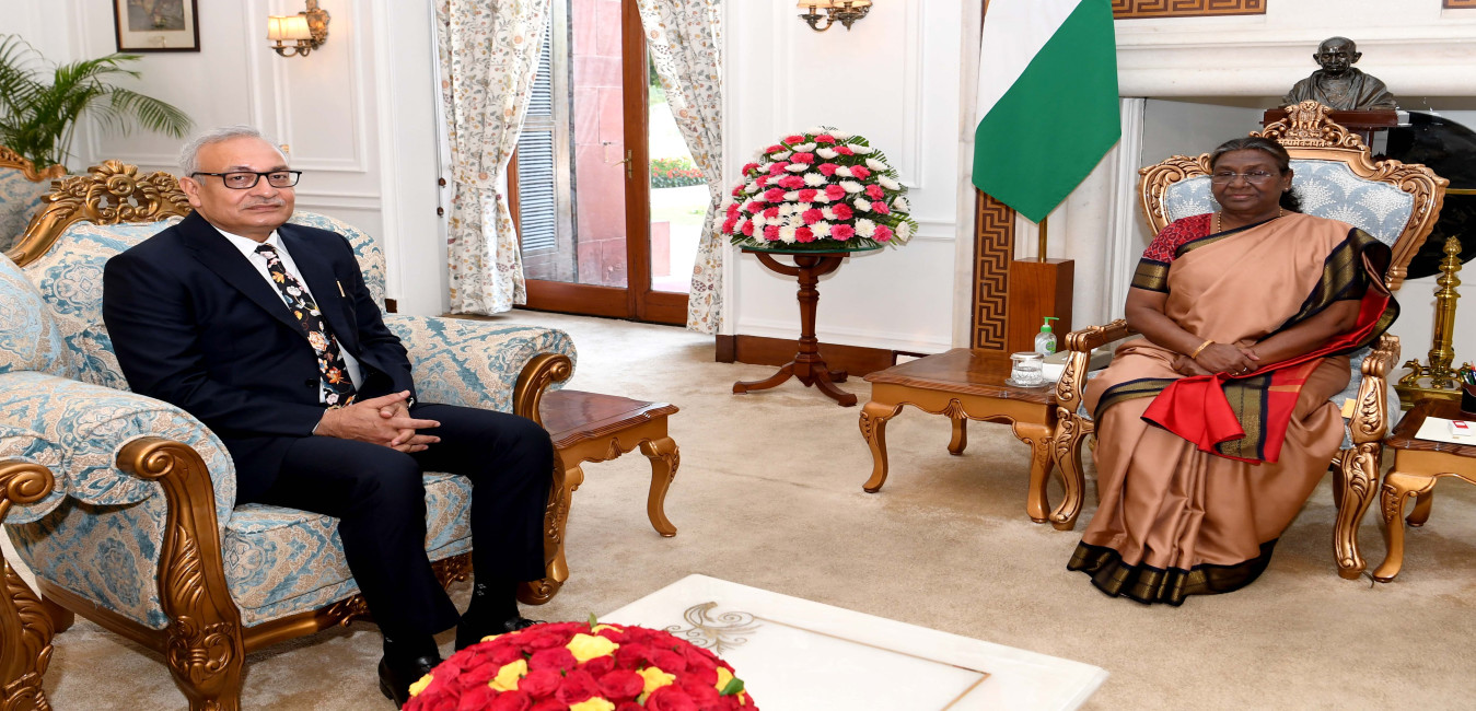 Shri Dependra Pathak, IPS(1990 Batch), Special Commissioner of Police, Protective Security Division meeting with the President of India Smt Droupadi Murmu at Rashtrapati Bhavan on April 8, 2024.