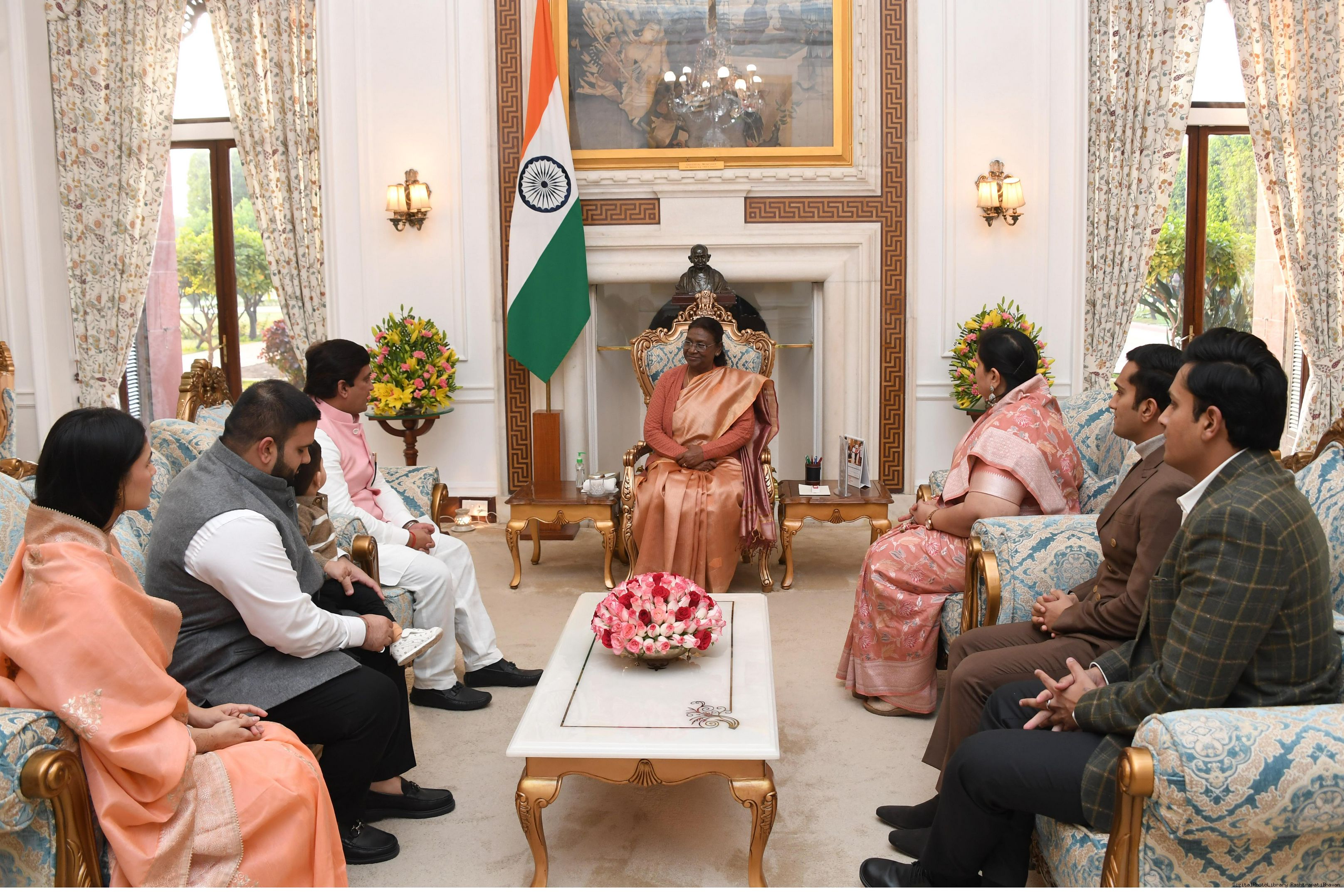 Shri Dhananjay Mahadik, MP (Rajya Sabha) along with others meeting with the President of India Smt. Droupadi Murmu at Rashtrapati Bhavan on December 15, 2023