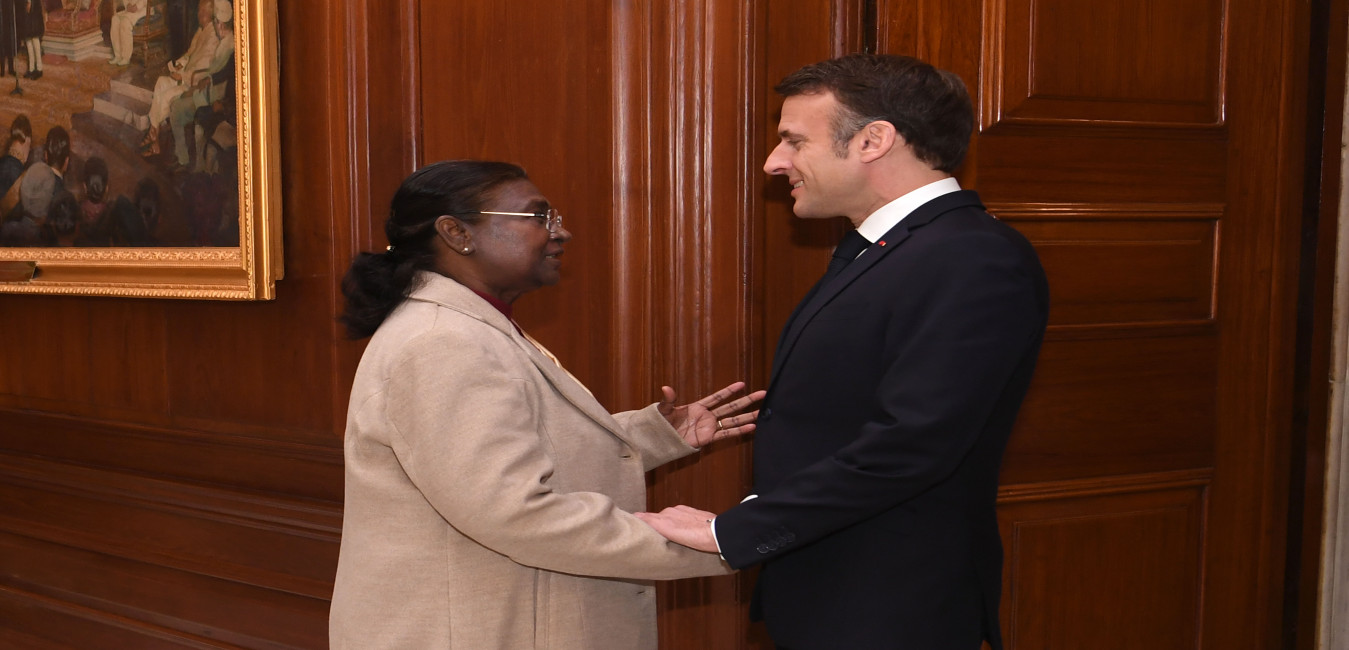 The President of India, Smt Droupadi Murmu received His Excellency Mr Emmanuel Macron, the President of the French Republic at Rashtrapati Bhavan on January 26, 2024.