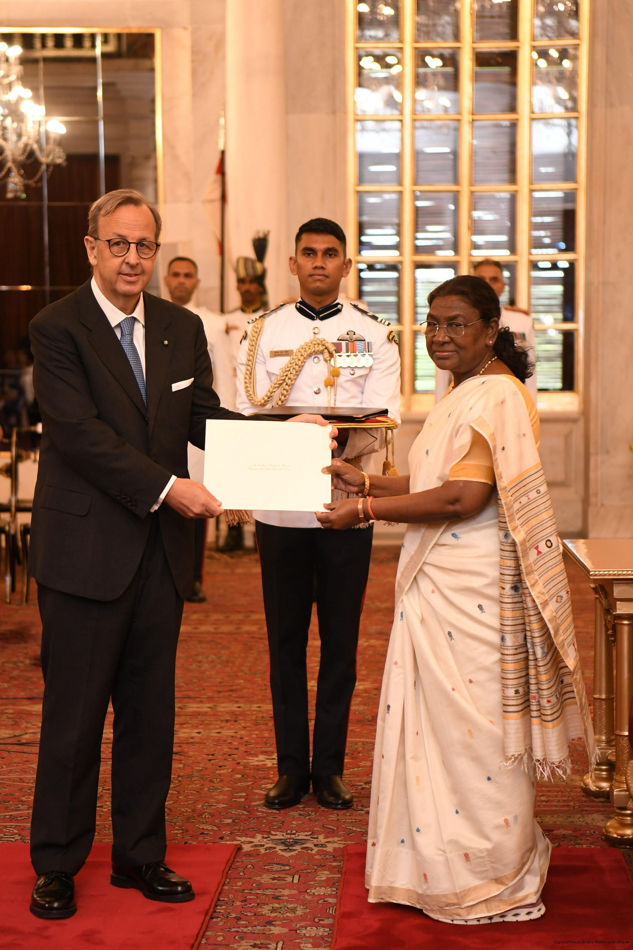 The Ambassador-designate of the Republic of Italy, H.E.Mr Antonio Enrico Bartoli presenting his credentials to the President of India, Smt Droupadi Murmu at Rashtrapati Bhavan on September 6, 2024.