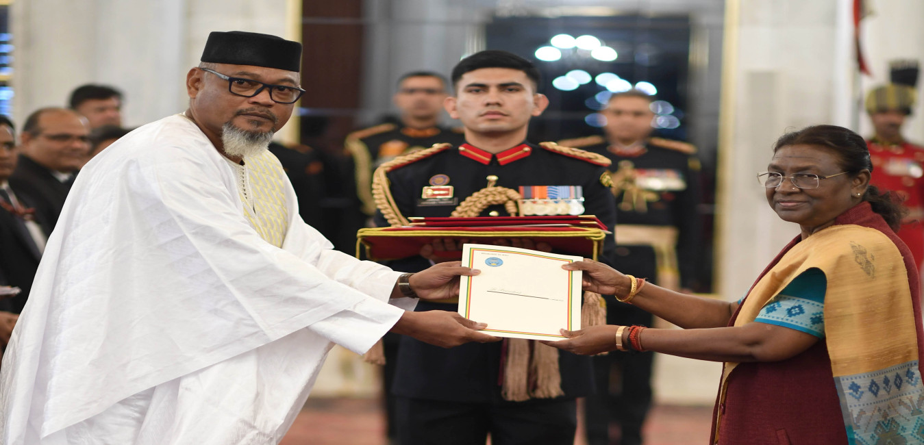 The Ambassador-designate of the Republic of Mali, H.E. Brigadier General Felix Diallo presenting his credentials to the President of India, Smt Droupadi Murmu at Rashtrapati Bhavan on November 28, 2023.