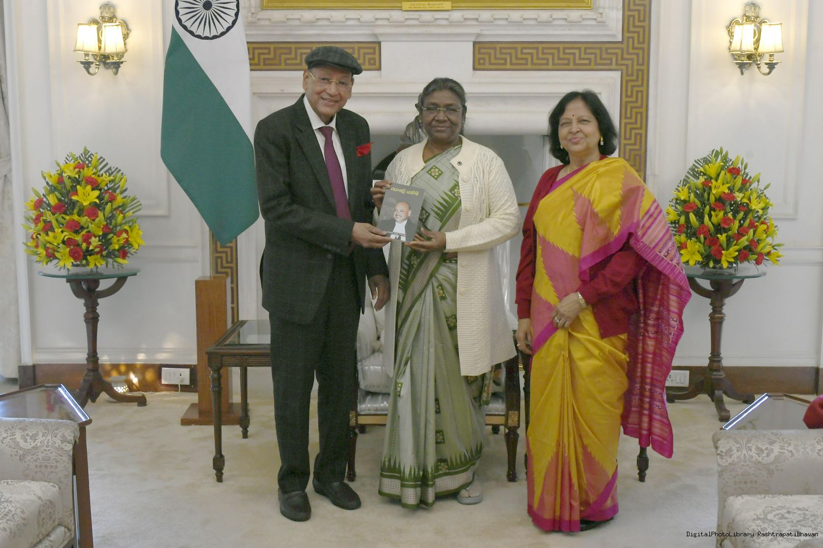 Shri Justice G.B. Patnaik (Retd.), former Chief Justice, Supreme Court of India along with his wife meeting with the President of India Smt. Droupadi Murmu at Rashtrapati Bhavan on January 17, 2023.