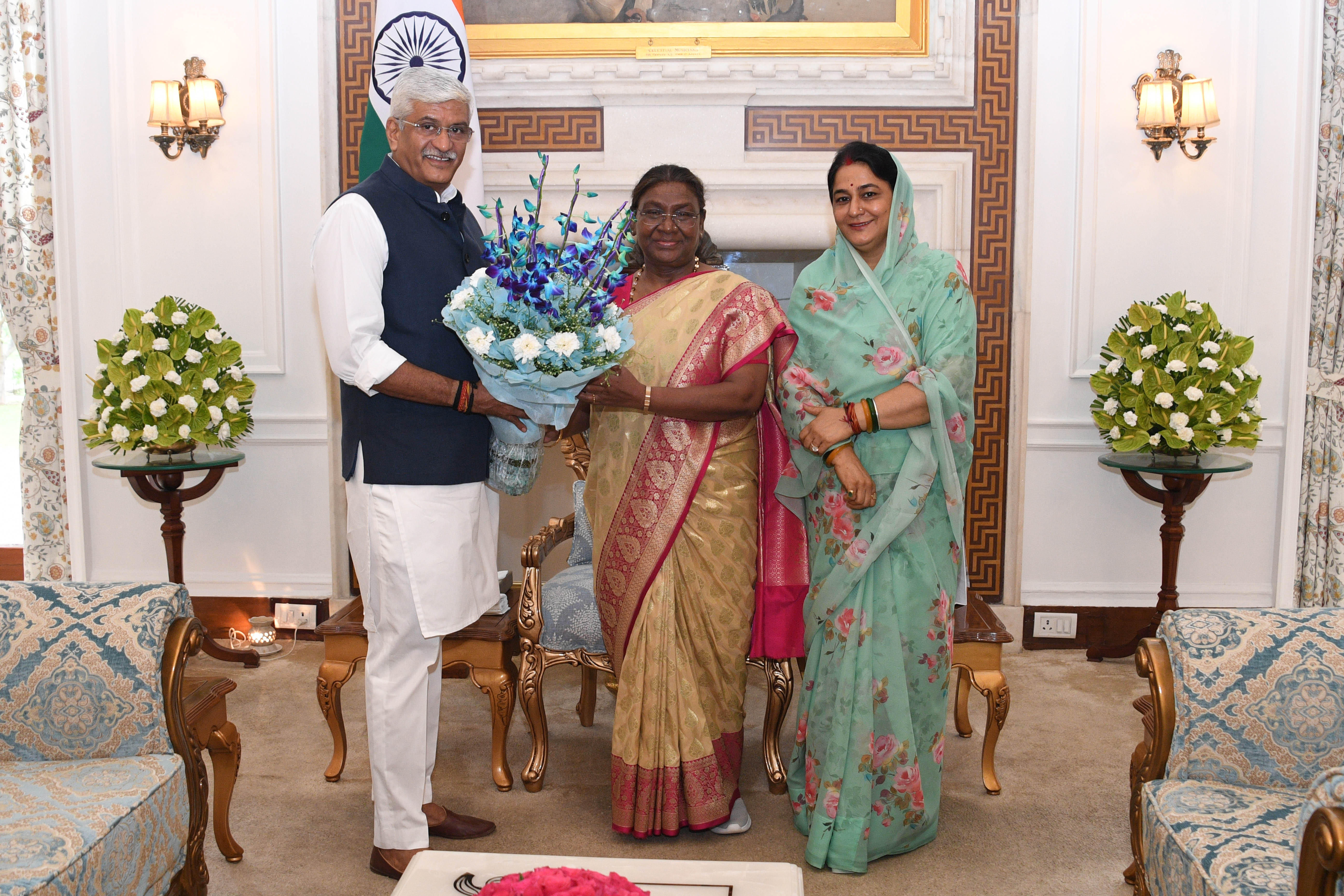 The Union Minister for Culture and Tourism, Shri Gajendra Singh Shekhawat along with his spouse, called on the President of India Smt. Droupadi Murmu at Rashtrapati Bhavan on July 3, 2024.