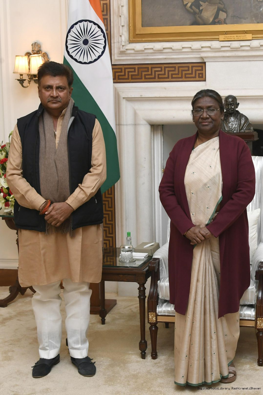 Shri Ganesh Singh, MP (LS) meeting with the President of India Smt. Droupadi Murmu at Rashtrapati Bhavan on January 09, 2023.