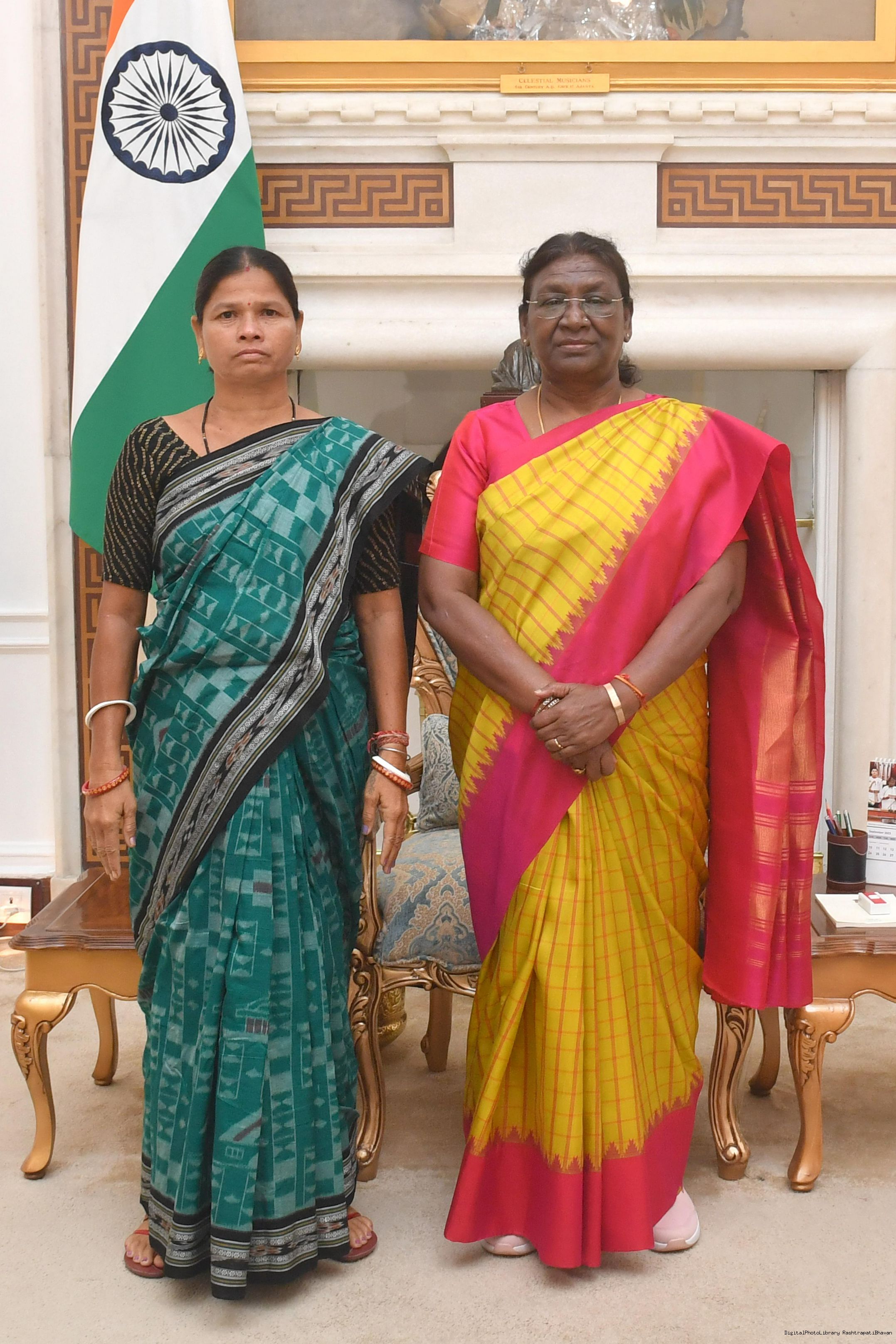 Smt. Ganga Rani Hansdah from Mayurbhanj, Odisha meeting with the President of India, Smt. Droupadi Murmu at Rashtrapati Bhavan on September 12, 2023.