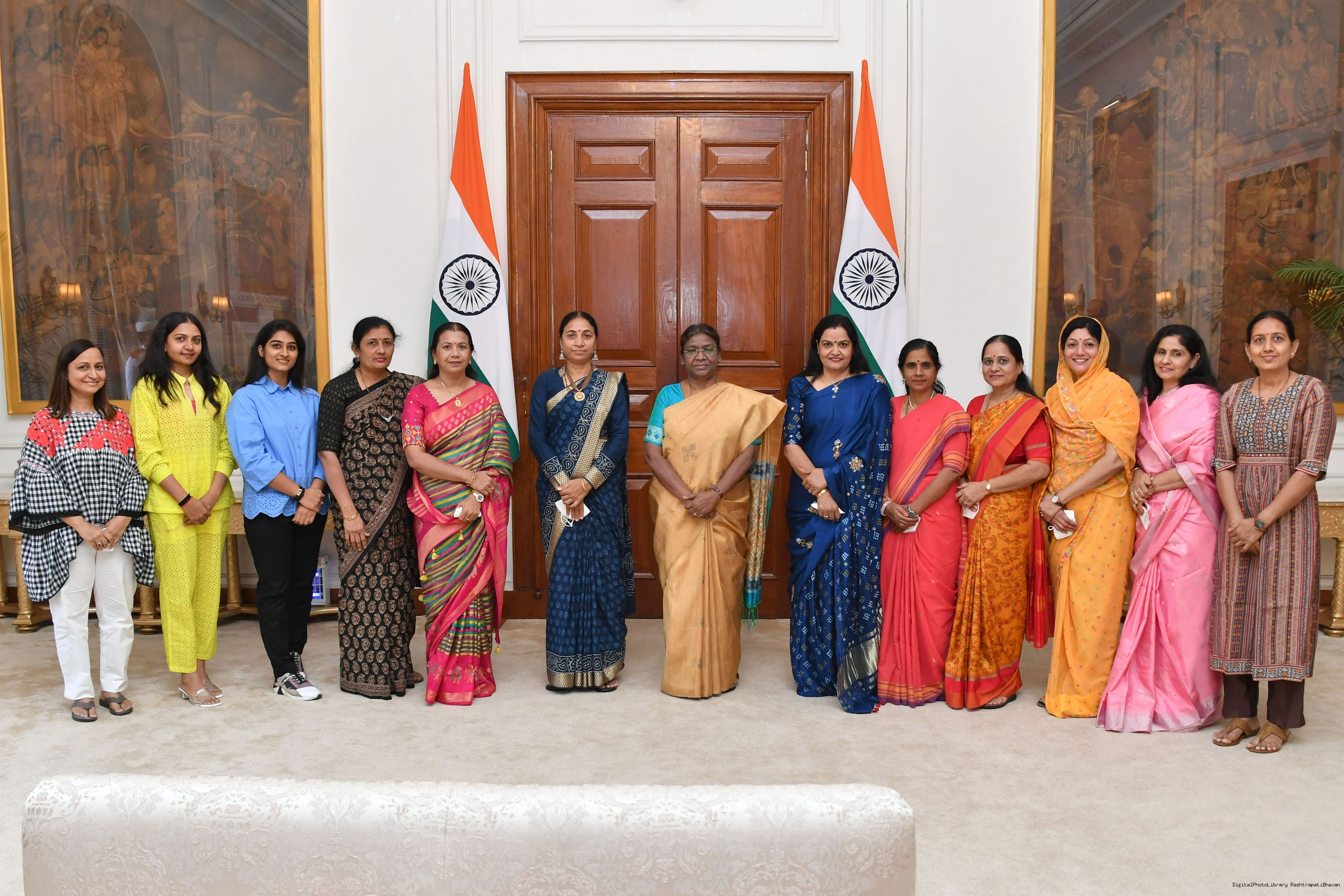 Smt. Geeta Mandaviya (wife of Union Health Minister, Dr. Mansukh Mandaviya) along with Others meeting with the President of India, Smt. Droupadi Murmu at Rashtrapati Bhavan on May 11, 2023