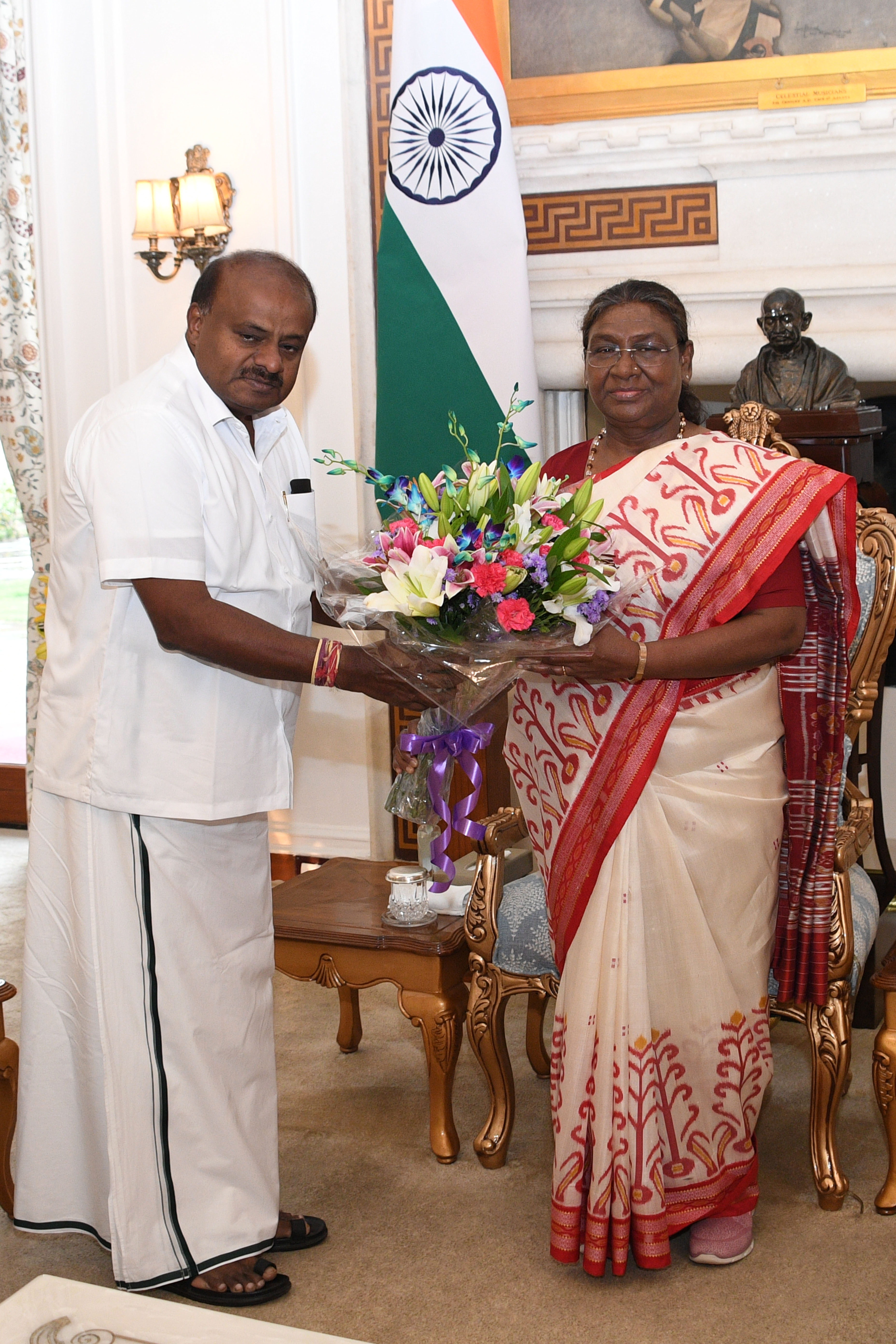 The Union Minister for Heavy Industries and Steel, Shri H. D. Kumaraswamy called on the President of India Smt. Droupadi Murmu at Rashtrapati Bhavan on June 21, 2024.
