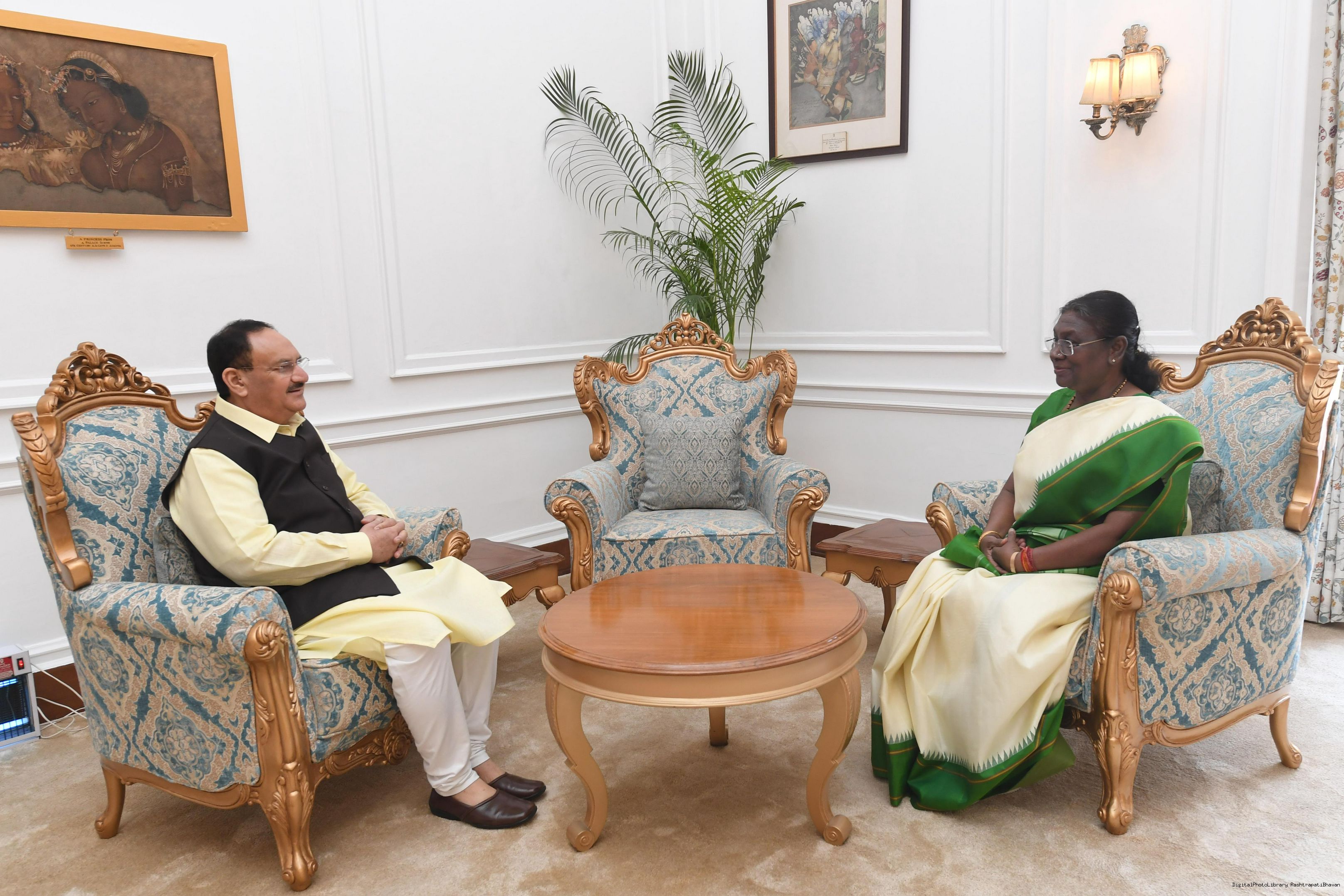 Shri JP Nadda, President, Bharatiya Janata Party meeting with the President of India Smt Droupadi Murmu at Rashtrapati Bhavan on March 14, 2024.