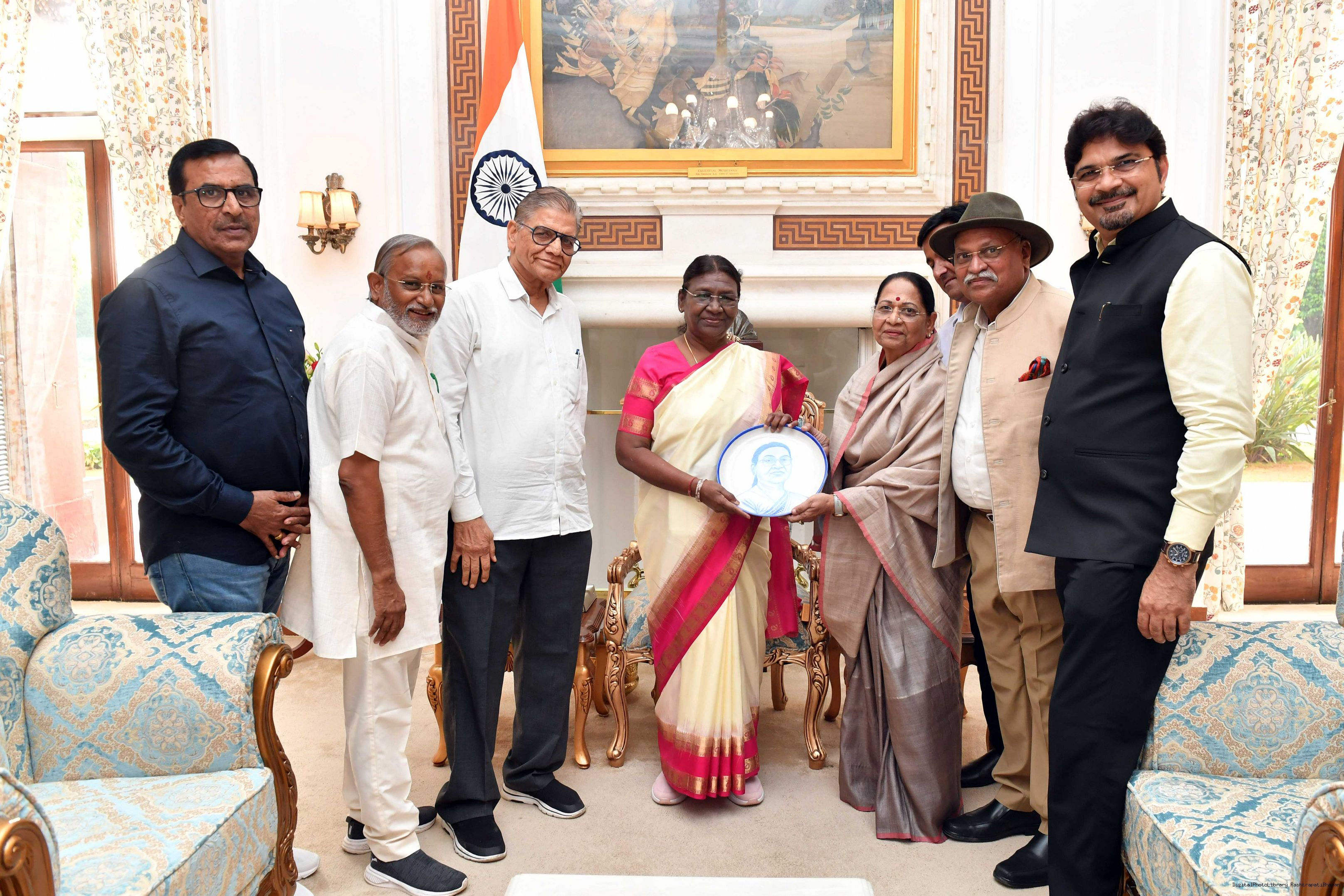 Shri Jagdish Mishra, National Vice President, Vipra Foundation along with others meeting with the President of India, Smt. Droupadi Murmu at Rashtrapati Bhavan on September 14, 2023.