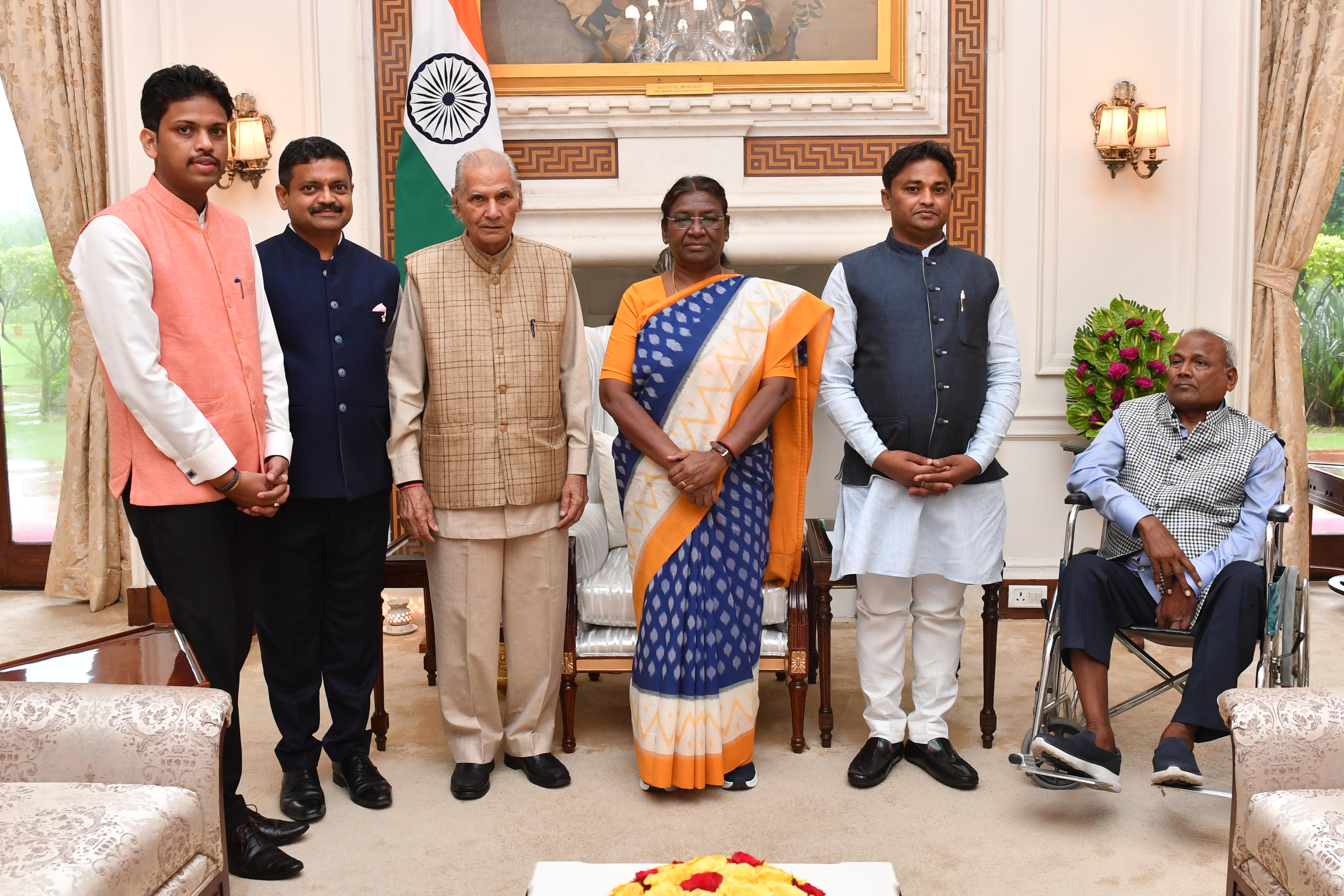 Shri Jai Prakash Agarwal, Chairman, Surya Foundation along with others meeting with the President of India, Smt. Droupadi Murmu at Rashtrapati Bhavan on June 30, 2023.