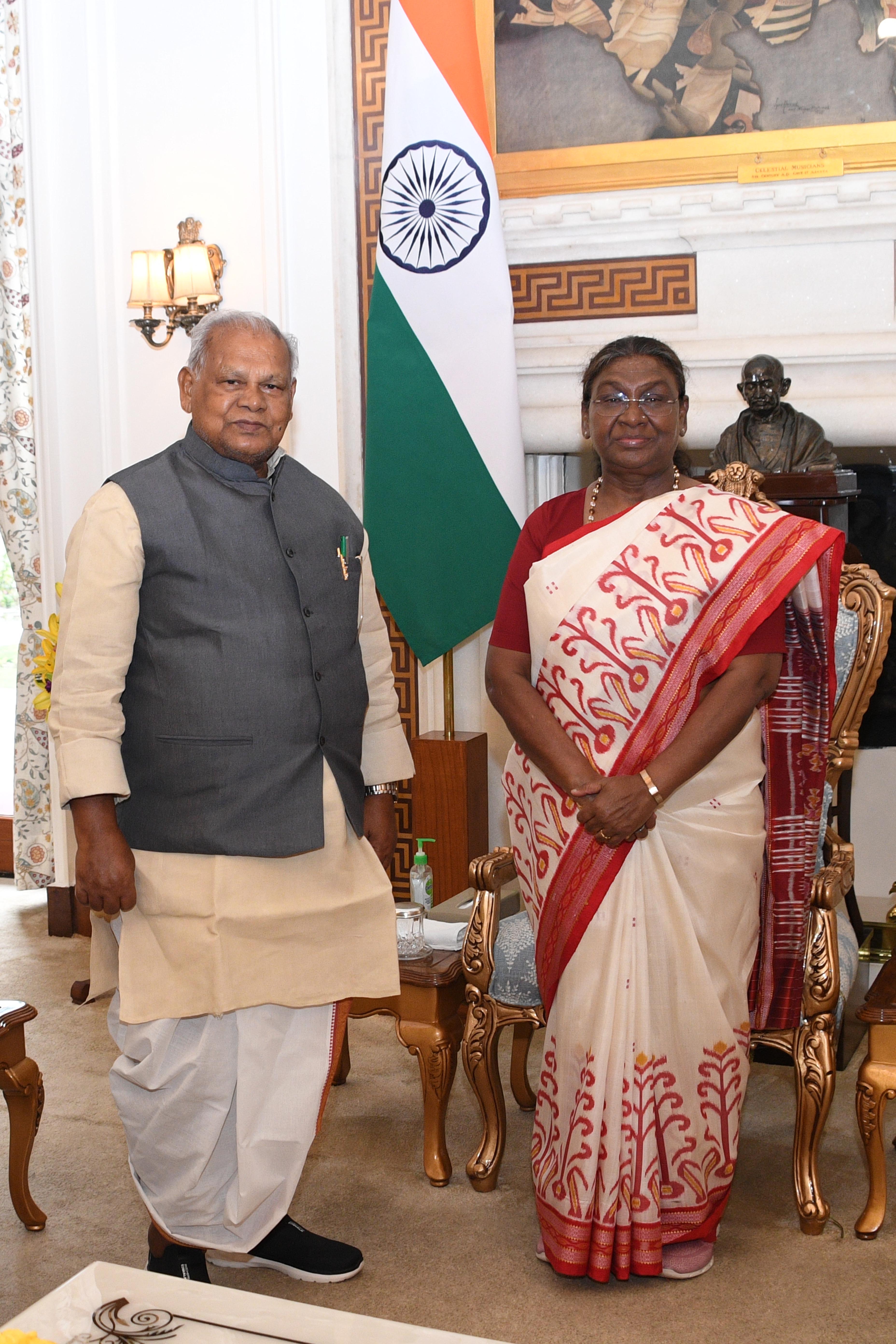 The Union Minister for Micro, Small and Medium Enterprises, Shri Jitan Ram Manjhi called on the President of India Smt. Droupadi Murmu at Rashtrapati Bhavan on June 21, 2024.