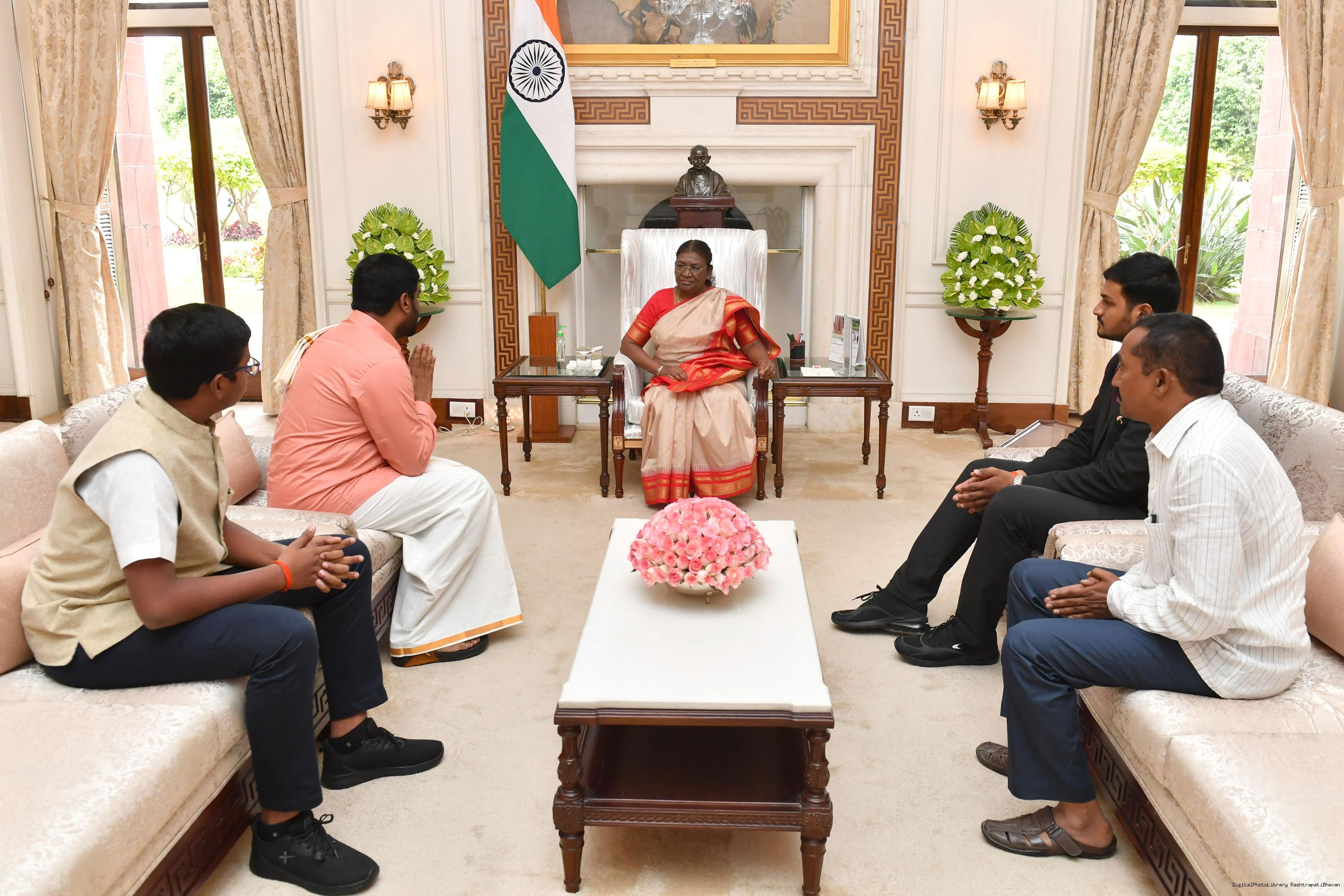 Shri Joginapally Santosh Kumar, MP (Rajya Sabha) along with others others meeting with the President of India, Smt. Droupadi Murmu at Rashtrapati Bhavan on August 01, 2023