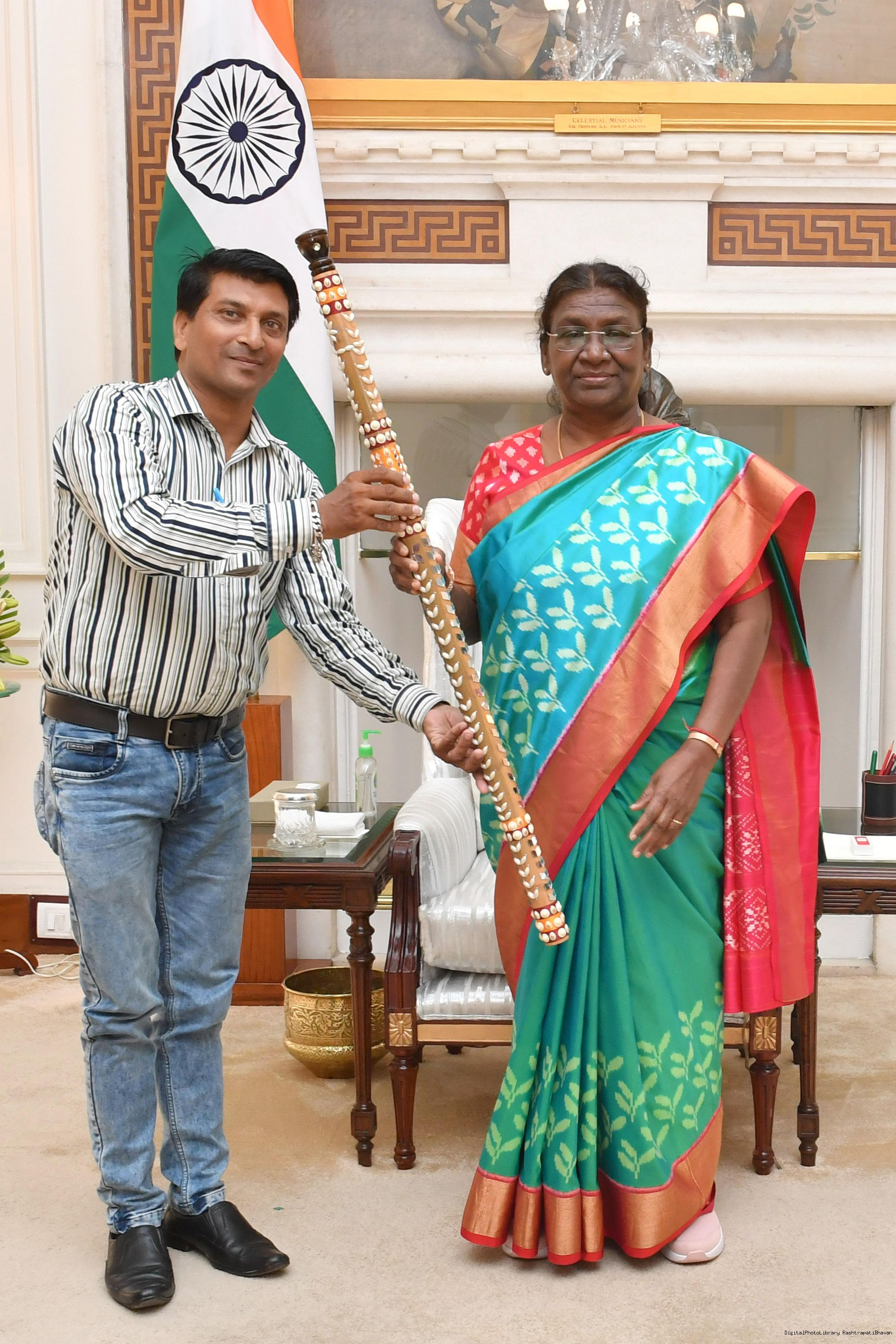 Shri Junaid Nabi from Nabi Sons, New Delhi meeting with the President of India, Smt. Droupadi Murmu at Rashtrapati Bhavan on July 11, 2023.