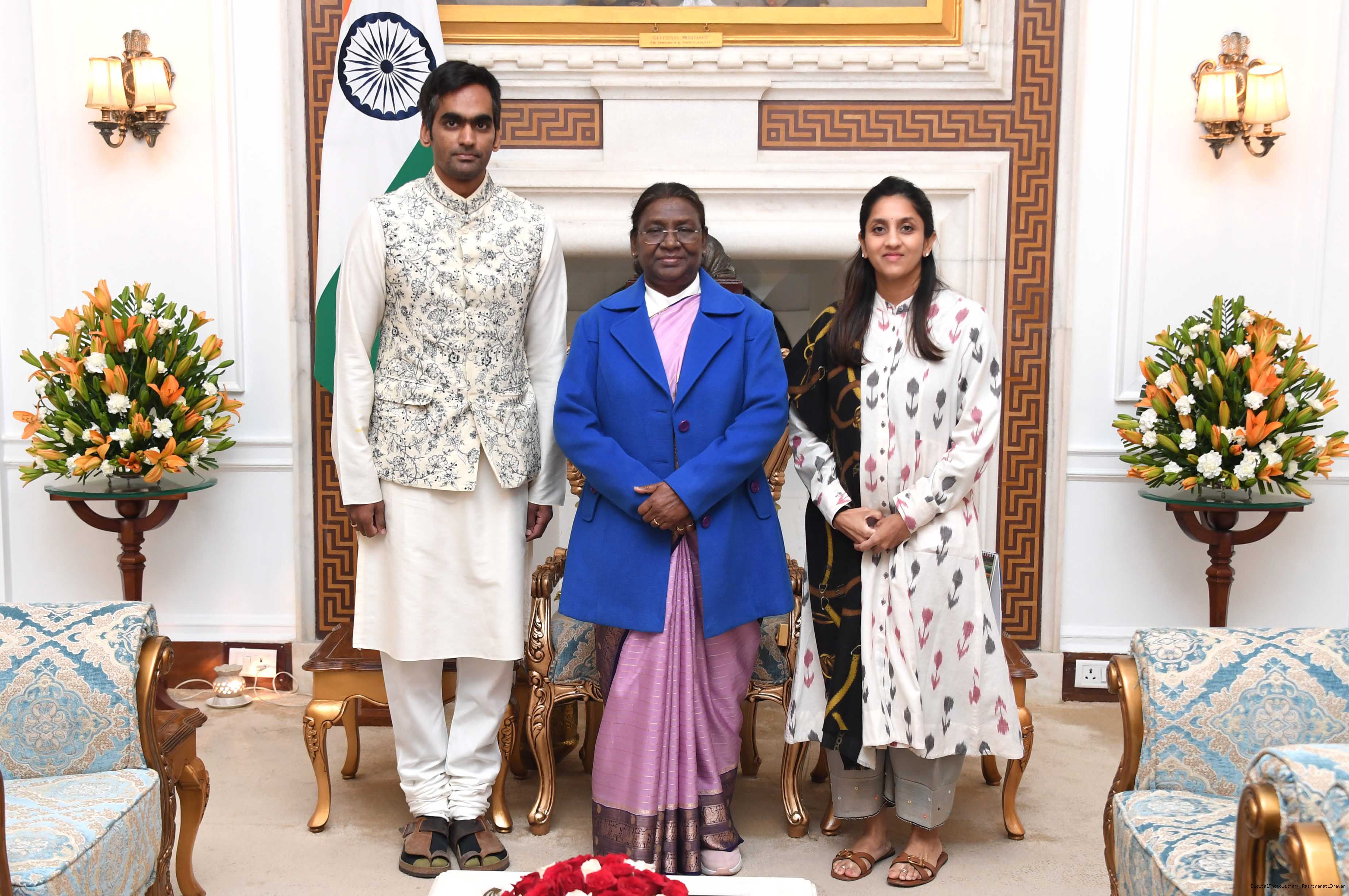 Shri Kadapala Sreyes Reddy, Great Grandson of former President of India, Dr. Neelam Sanjiva Reddy along with others meeting with the President of India, Smt. Droupadi Murmu at Rashtrapati Bhavan on January 12, 2024.
