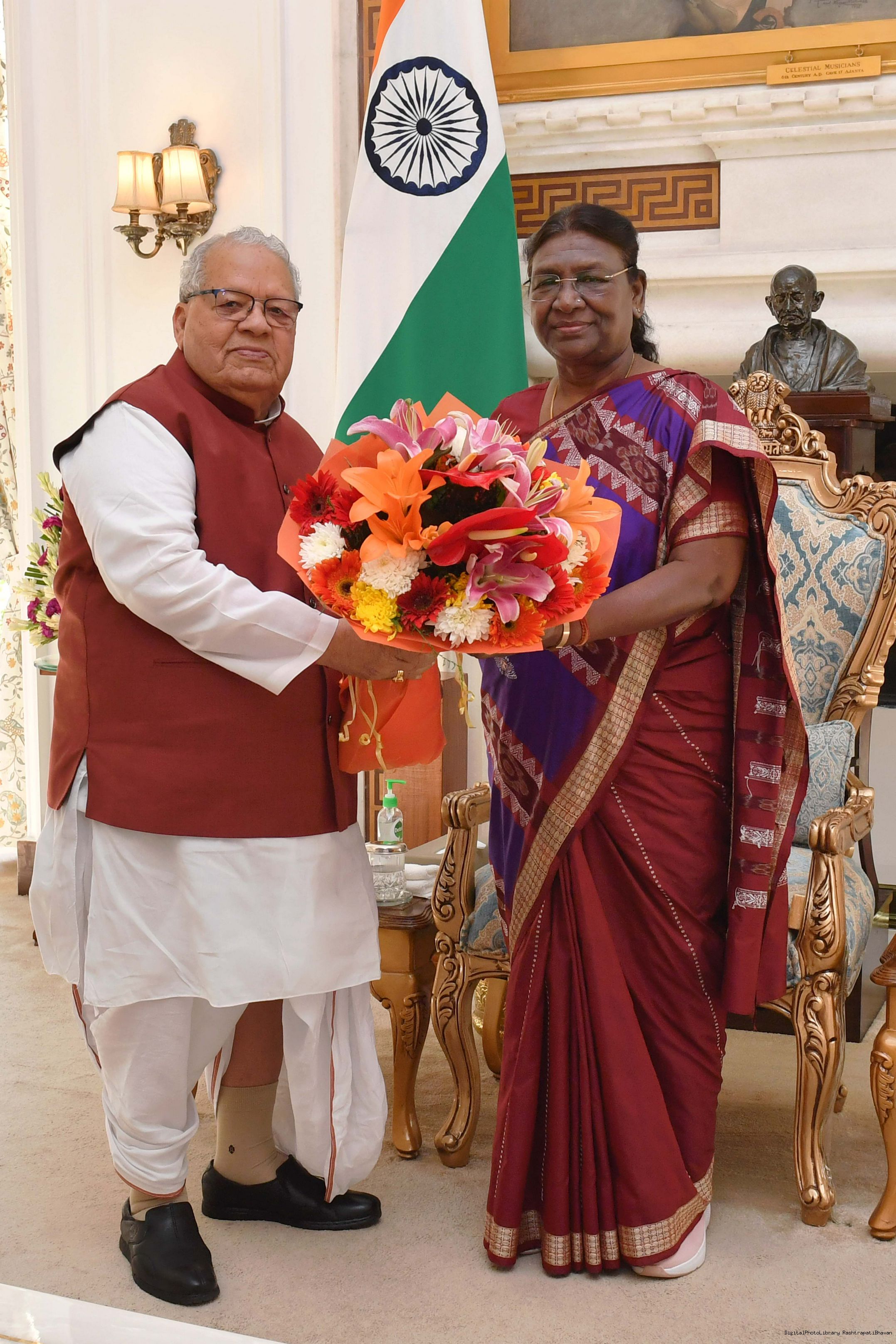 Shri Kalraj Mishra, Governor of Rajasthan meeting with the President of India, Smt. Droupadi Murmu, at Rashtrapati Bhavan on Nov 18, 2022.
