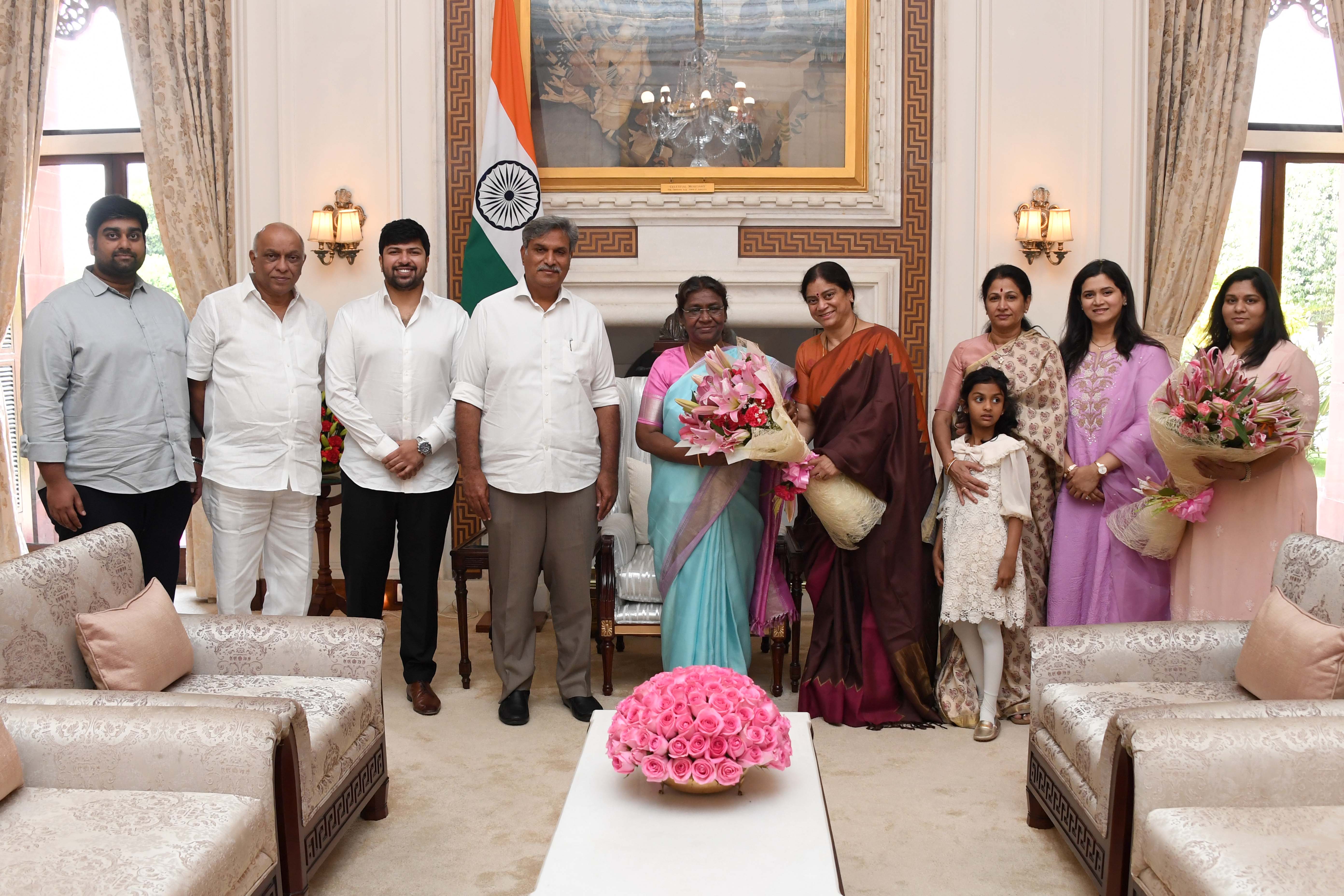 Shri Kesineni Srinivas (Nani), MP(LS) along with others meeting with the President of India Smt. Droupadi Murmu at Rashtrapati Bhavanon on March 14, 2023.