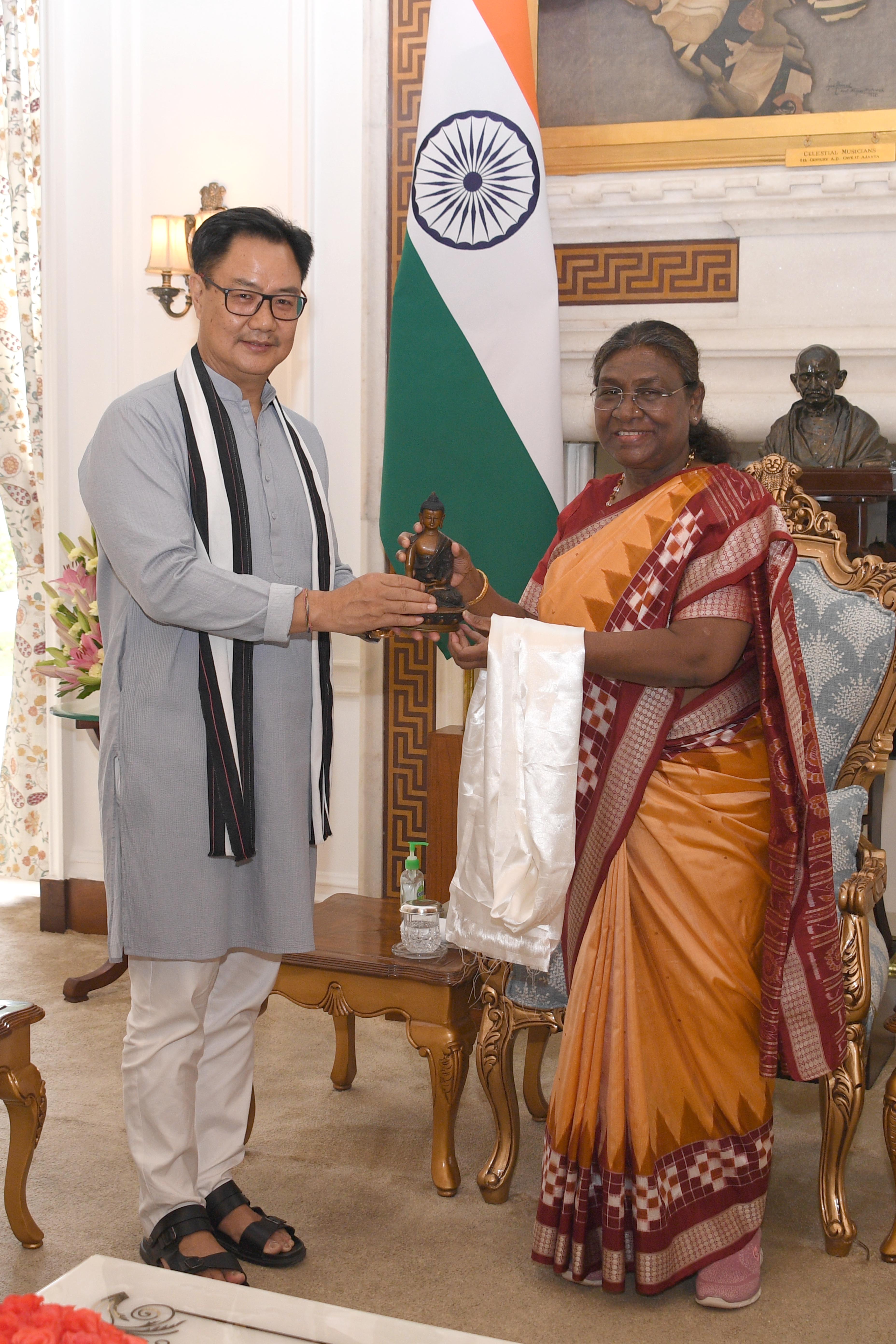 The Union Minister for Parliamentary Affairs and Minority Affairs, Shri Kiren Rijiju called on the President of India Smt. Droupadi Murmu at Rashtrapati Bhavan on June 14, 2024.