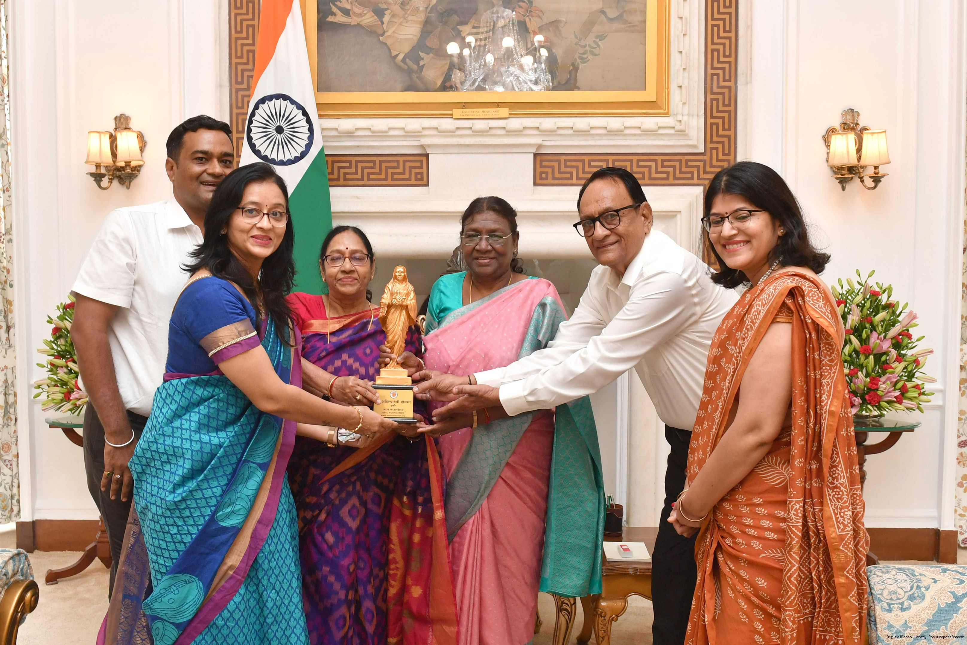 Smt Mala Vajpayee Tiwari, Niece of former Prime Minister of India, Bharat Ratna Shri Atal Bihari Vajpayee along with others meeting with the President of India, Smt. Droupadi Murmu at Rashtrapati Bhavan on September 14, 2023.