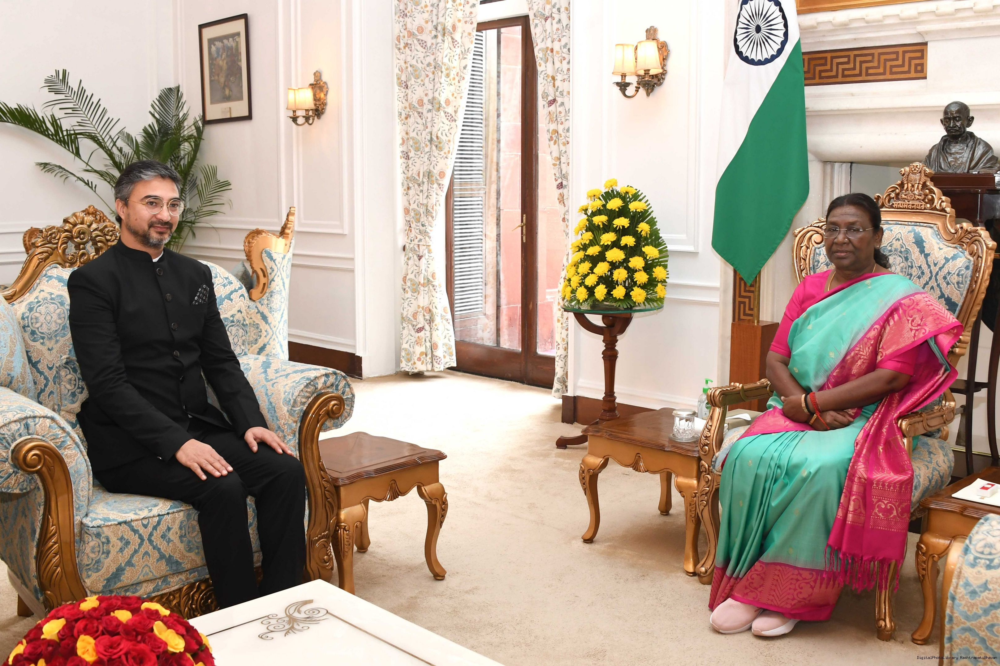 The High Commissioner-designate of India to Jamaica, Shri Mayank Joshi meeting with the President of India, Smt. Droupadi Murmu at Rashtrapati Bhavan on November 24, 2023.