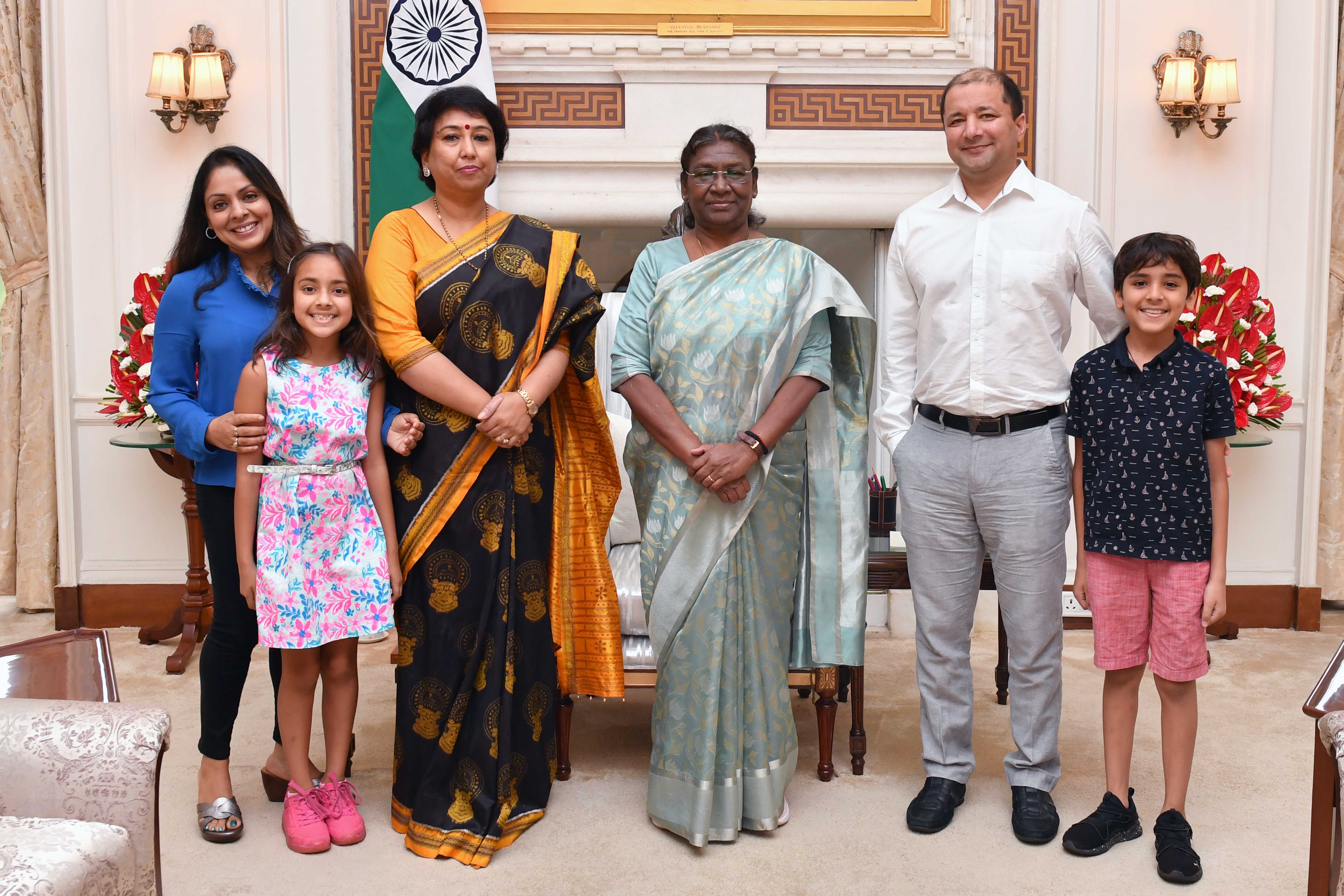Smt. Mridula Pradhan along with others meeting with the President of India, Smt. Droupadi Murmu at Rashtrapati Bhavan on July 8, 2023.