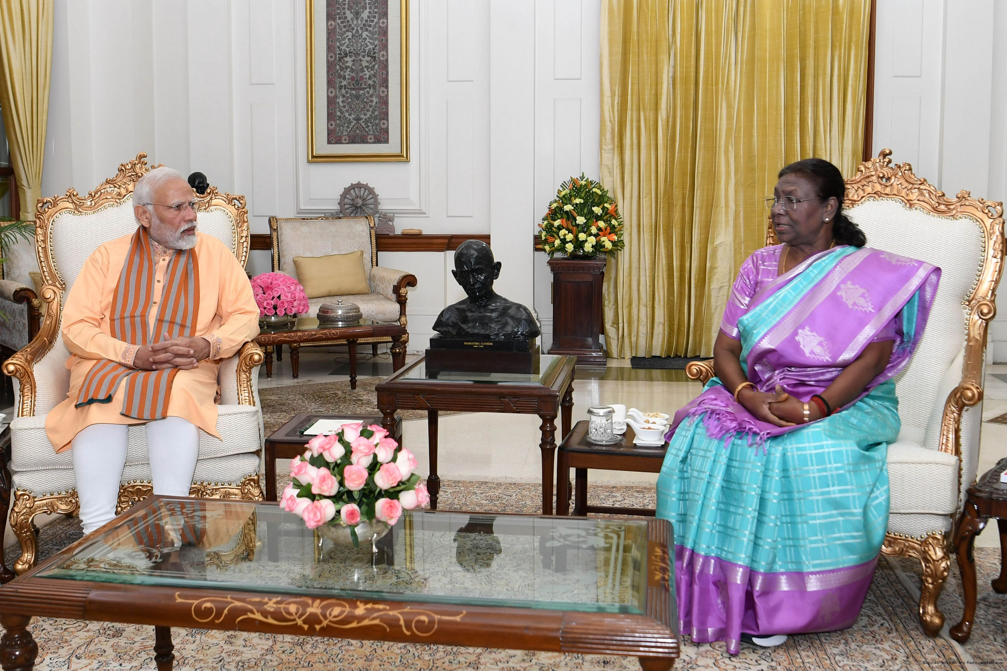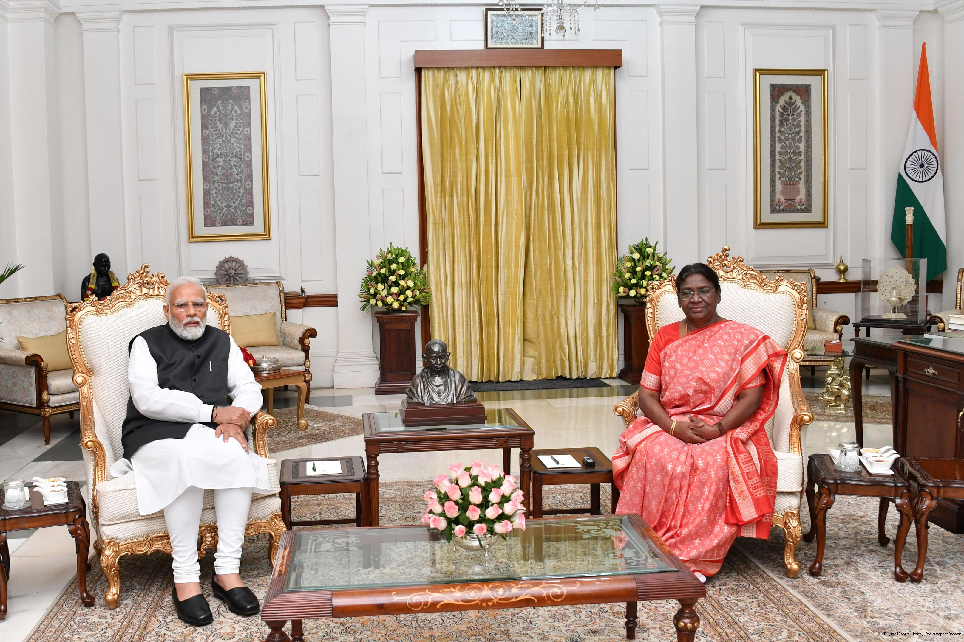 The Prime Minister of India, Shri Narendra Modi called on the President of India, Smt Droupadi Murmu at Rashtrapati Bhavan on May 30, 2023.