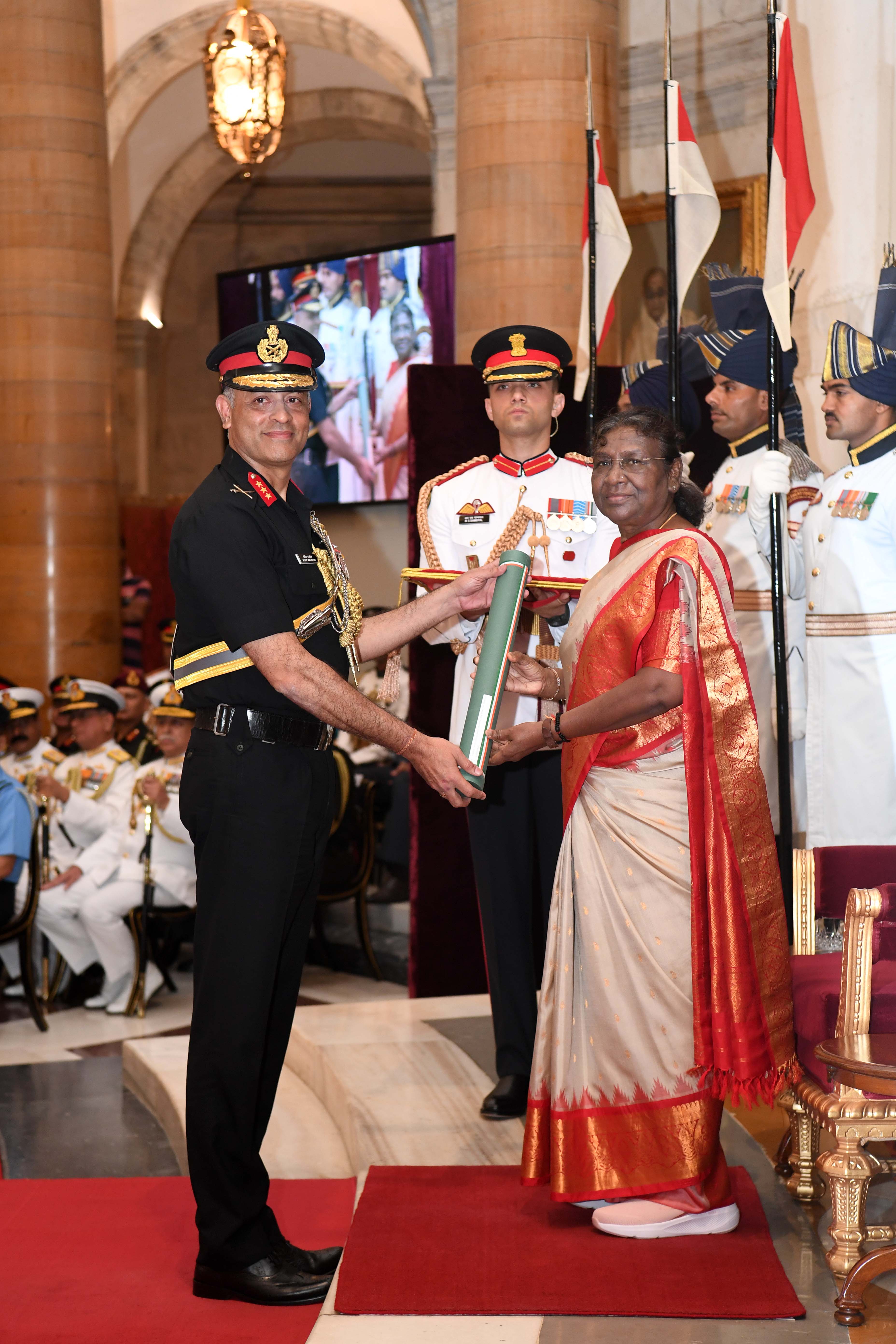 The President of India, Smt Droupadi Murmu presented Distinguished Service Awards at the Defence Investiture Ceremony-II held at Rashtrapati Bhavan on June 27, 2023.