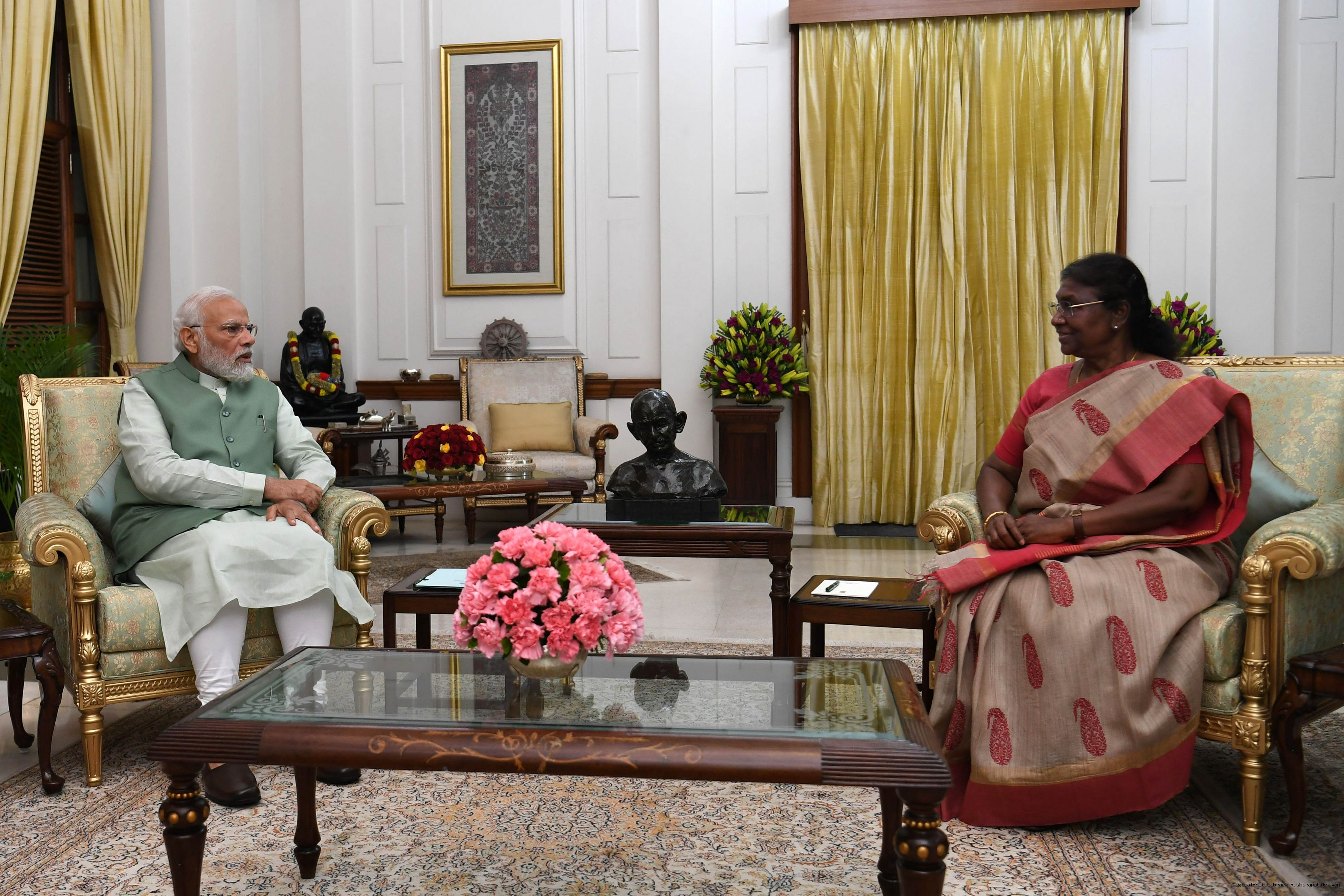 The Prime Minister of India, Shri Narendra Modi called on the president of India Smt. Droupadi Murmu at Rashtrapati Bhavan on June 07, 2024.