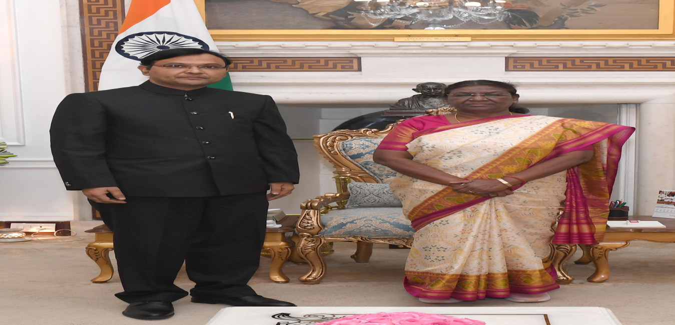 The High Commissioner-designate of India to Trinidad and Tobago, Dr. Pradeep Singh Rajpurohit meeting with the President of India, Smt. Droupadi Murmu at Rashtrapati Bhavan on September 25, 2023.