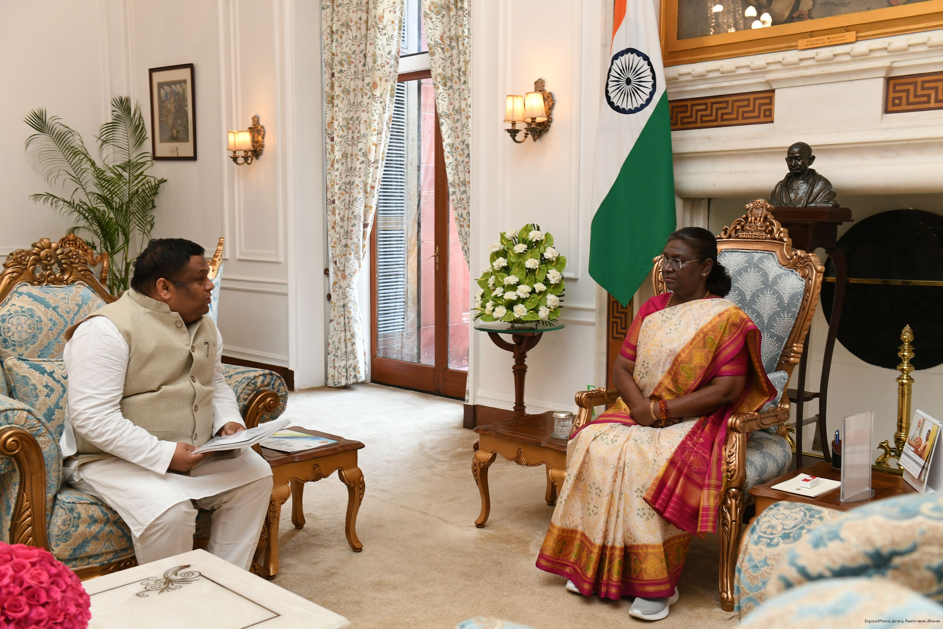 Shir Priyank Kanoongo, Chairperson, National, Commission for Protection of Child Rights meeting with the President of India, Smt. Droupadi Murmu, at Rashtrapati Bhavan on Sep 14, 2022.