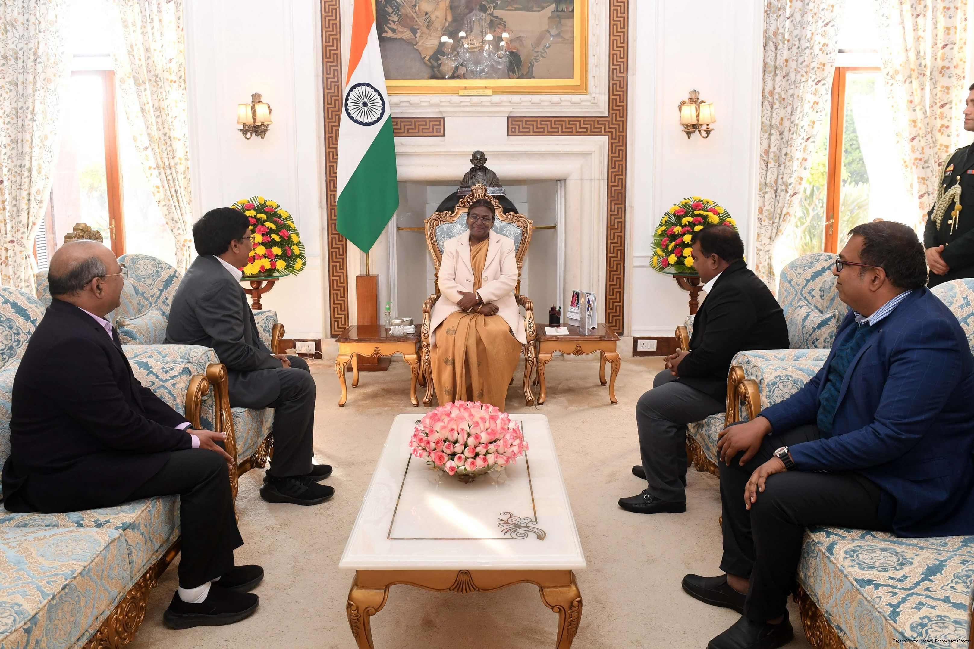 Shri Purna Chandra Hembram along with Others meeting with the President of India, Smt Droupadi Murmu at Rashtrapati Bhavan on February 9, 2024