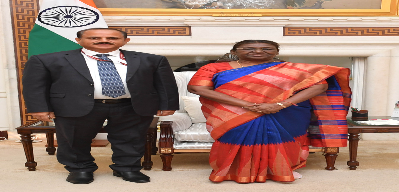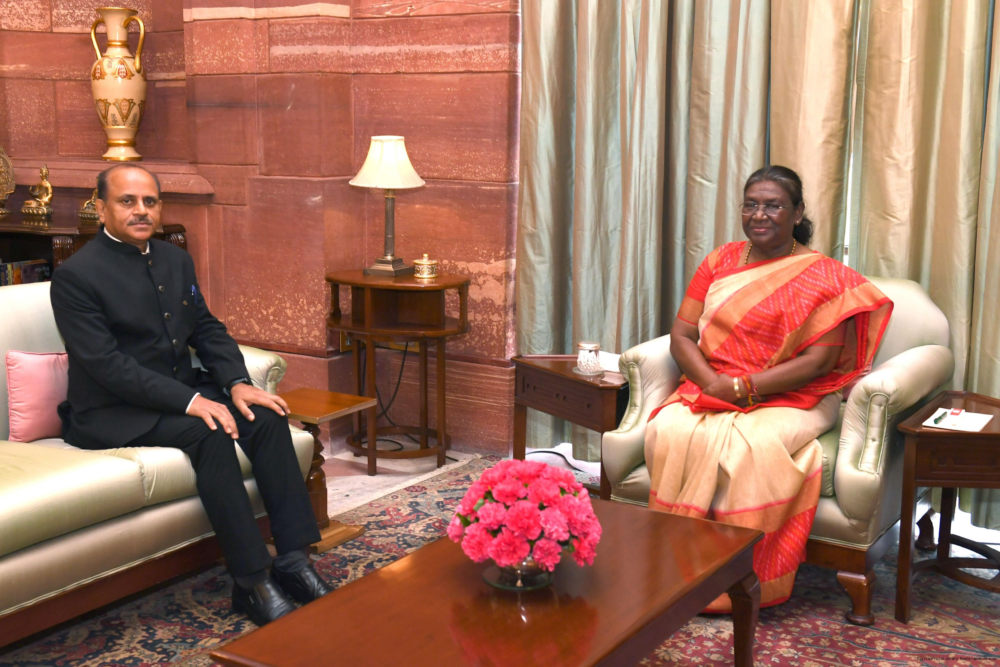 Shri Rajesh Kumar Kaushal, Director General, Central Public Works Department (CPWD) meeting with the President of India, Smt. Droupadi Murmu at Rashtrapati Bhavan on August 10, 2023.