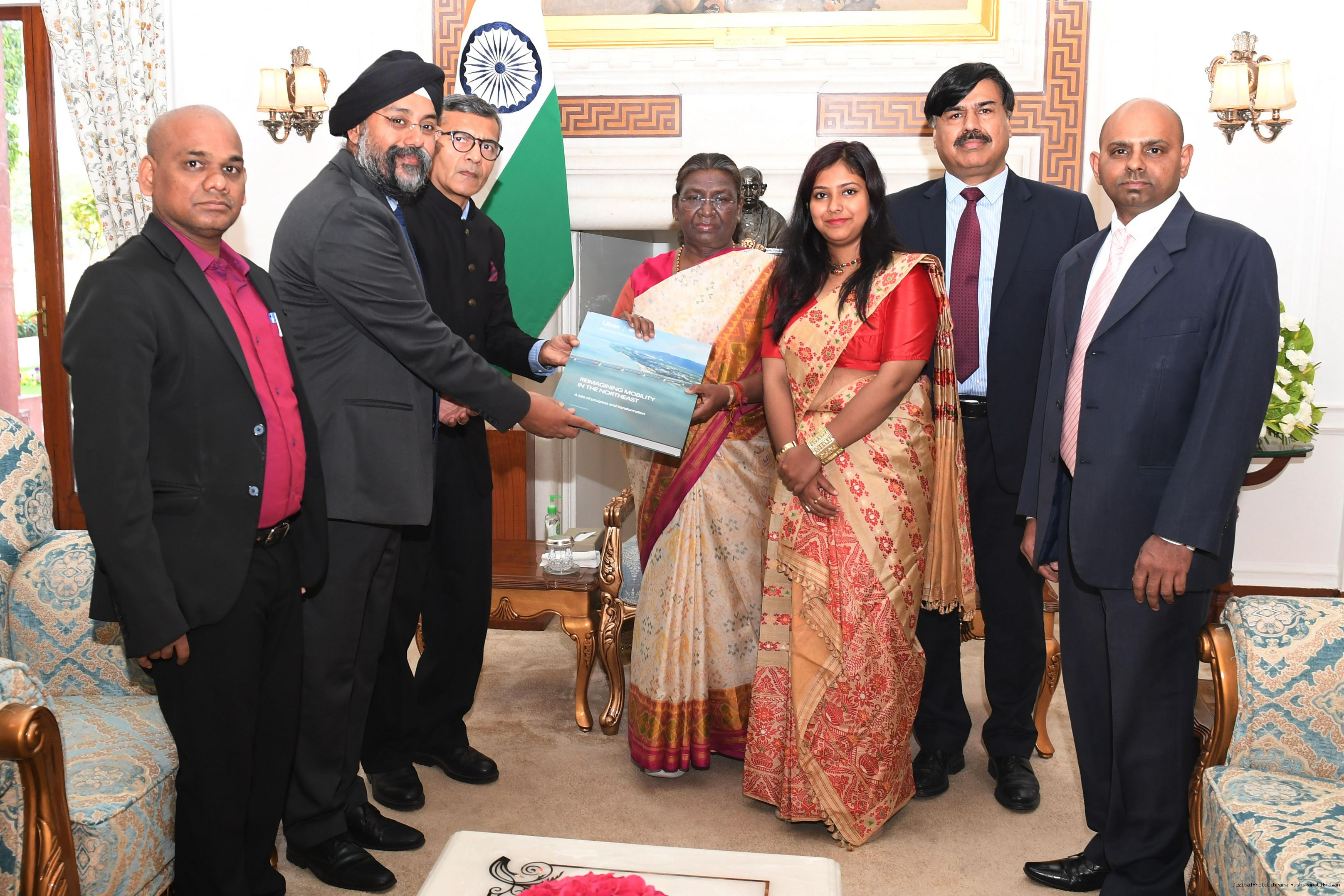 Shri Rajesh Kumar Singh, Secretary, Department for Promotion of Industry, Internal Trade (DPIIT), Ministry of Commece Industry, Govt of India along with others meeting with the President of India Smt Droupadi Murmu at Rashtrapati Bhavan on March 19, 2024.