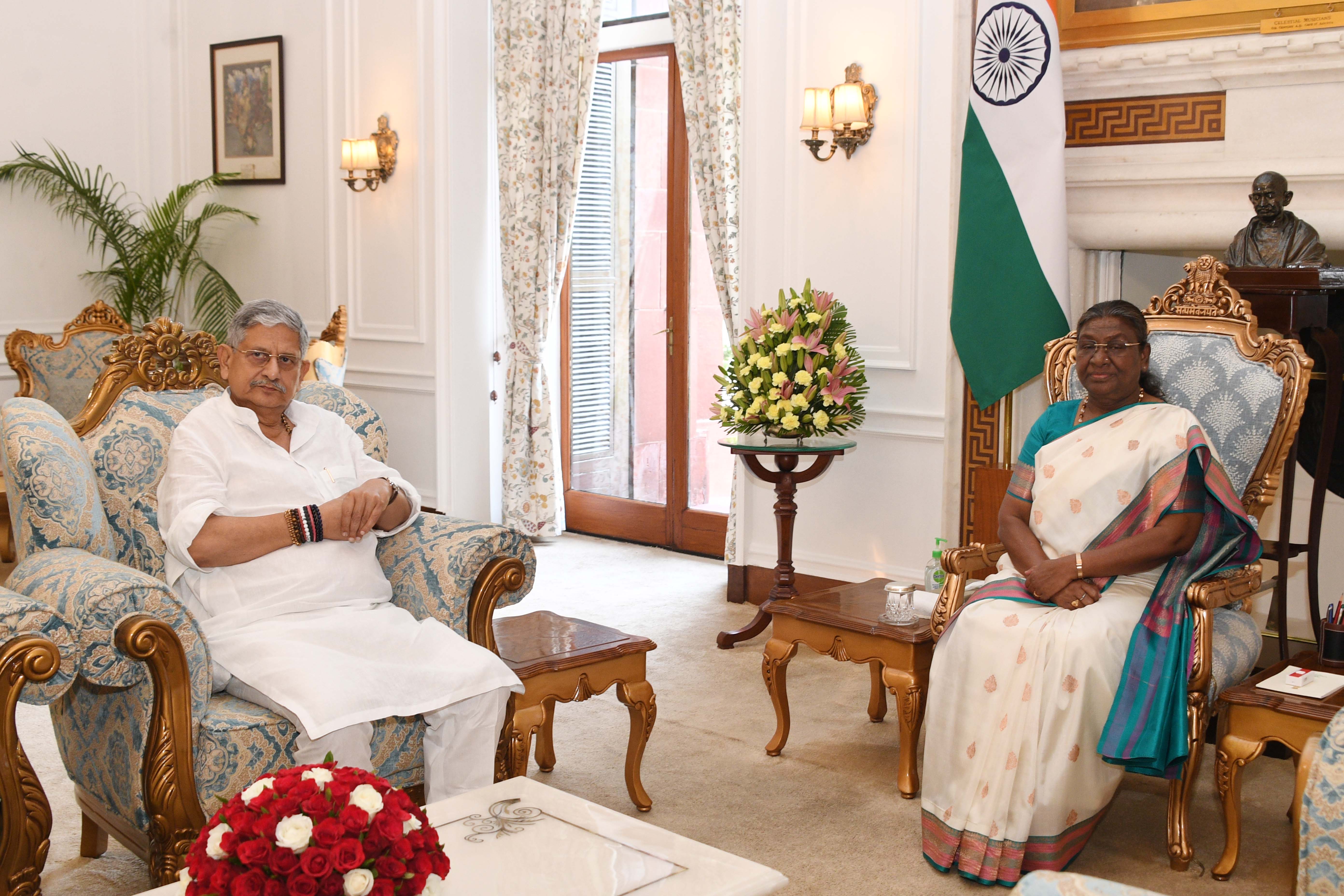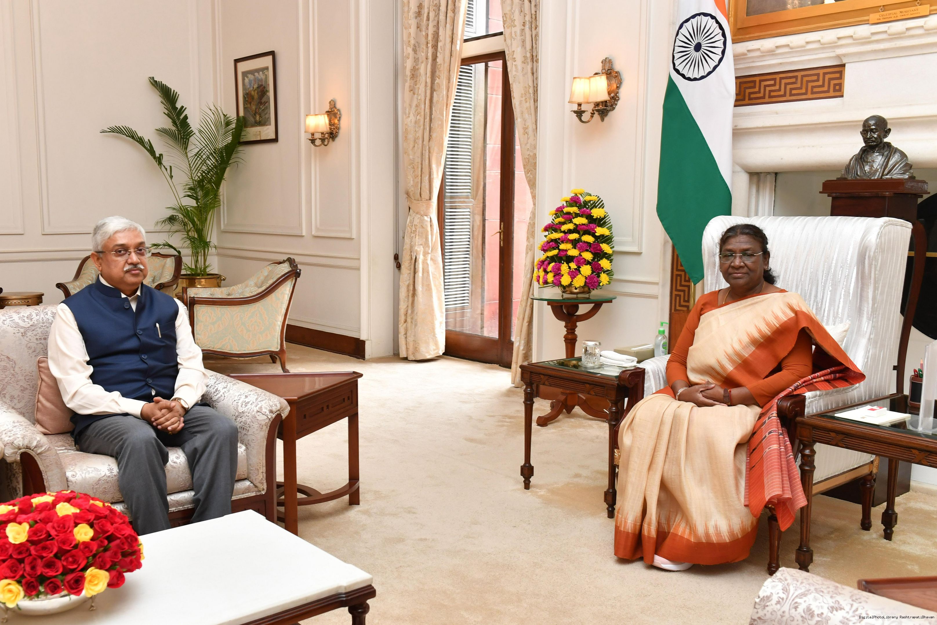 Shri Rajiv Ranjan, Advocate General, Jharkhand meeting with the President of India, Smt. Droupadi Murmu at Rashtrapati Bhavan on June 23, 2023.