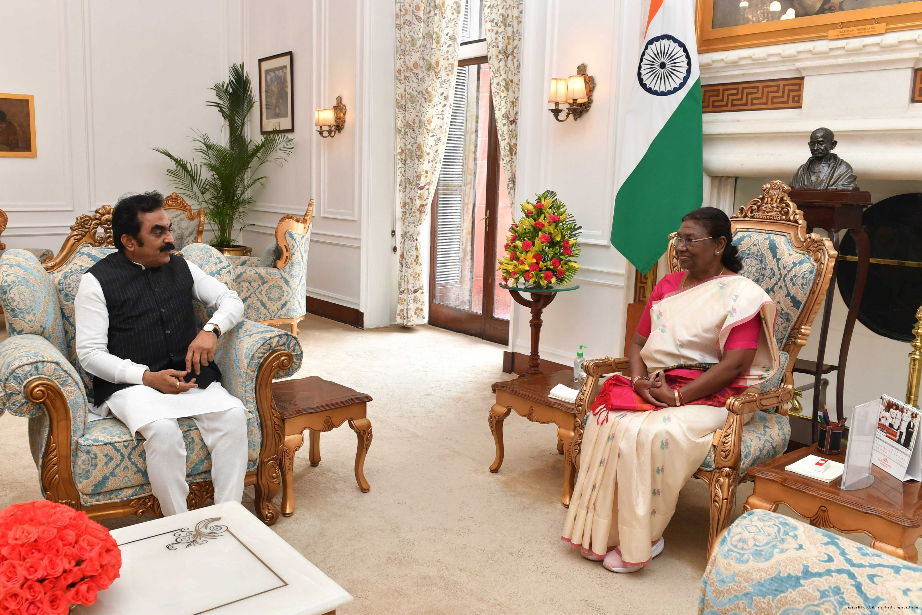 Shri Rakesh Singh, MP LS from Jabalpur meeting with the President of India, Smt. Droupadi Murmu, at Rashtrapati Bhavan on Nov 12, 2022.