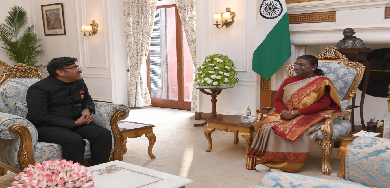 Prof. Ram Kumar Kakani, Director, Indian Institute of Management, Raipur meeting with the President of India, Smt. Droupadi Murmu at Rashtrapati Bhavan on January 22, 2024.