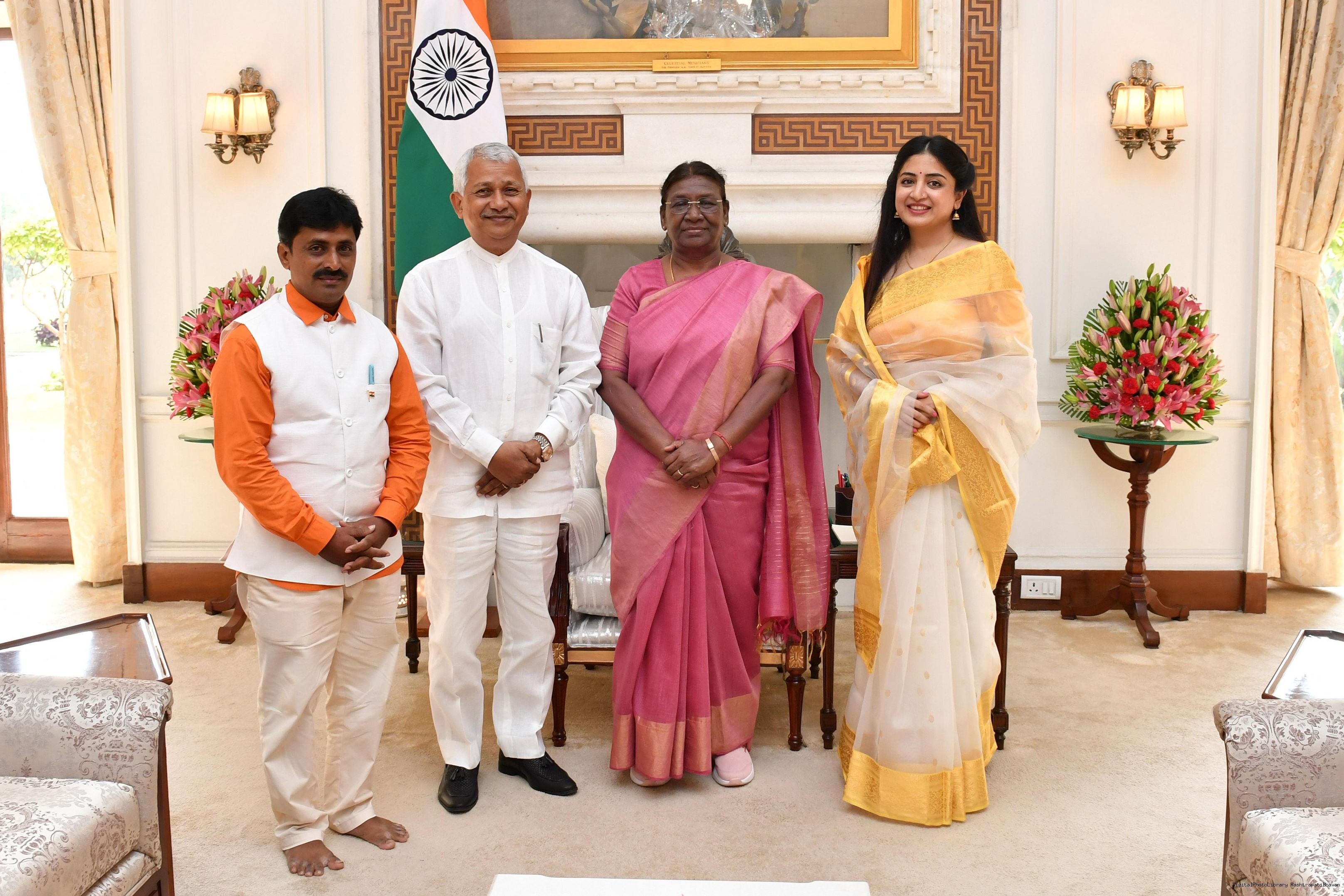 Shri Ramachandru Tejavath, IAS Retd along with others meeting with the President of India, Smt. Droupadi Murmu at Rashtrapati Bhavan on August 14, 2023.