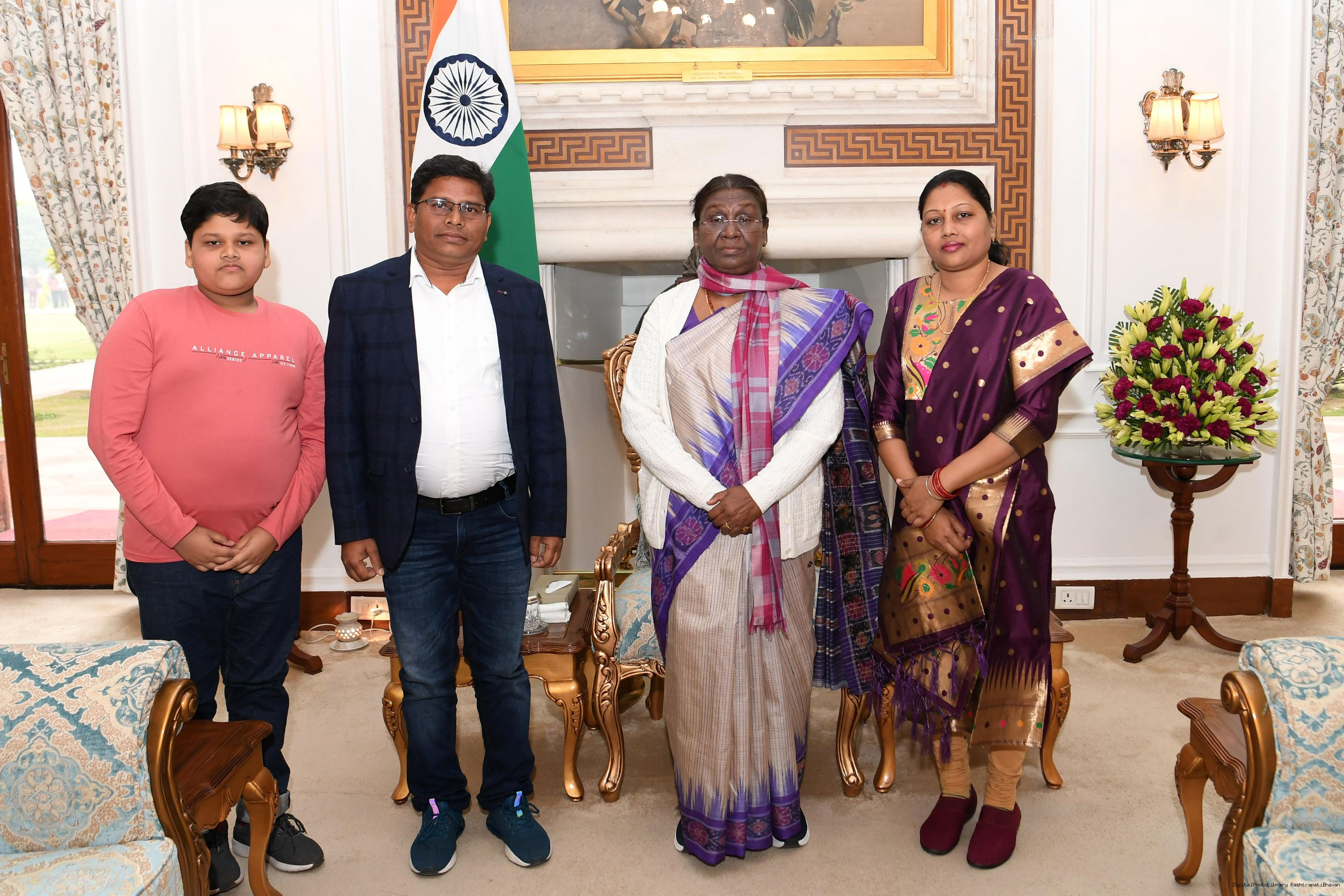 Shri Ranjan Kumar Mohanta along with others meeting with the President of India, Smt. Droupadi Murmu, at Rashtrapati Bhavan on Jan 04, 2024.