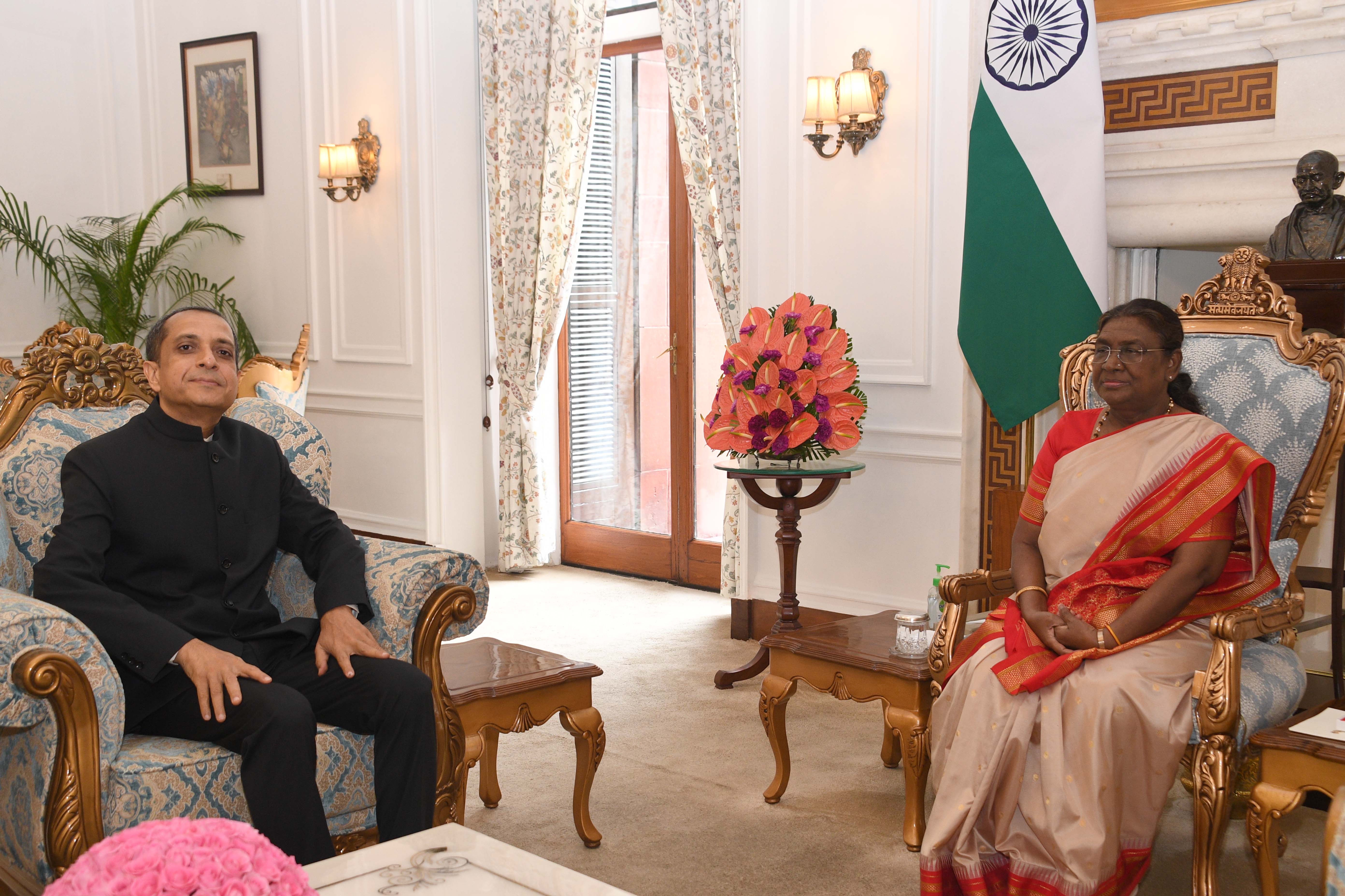 The Ambassador-designate of India to Ukraine, Shri Ravi Shankar meeting with the President of India, Smt Droupadi Murmu at Rashtrapati Bhavan on July 26, 2024.